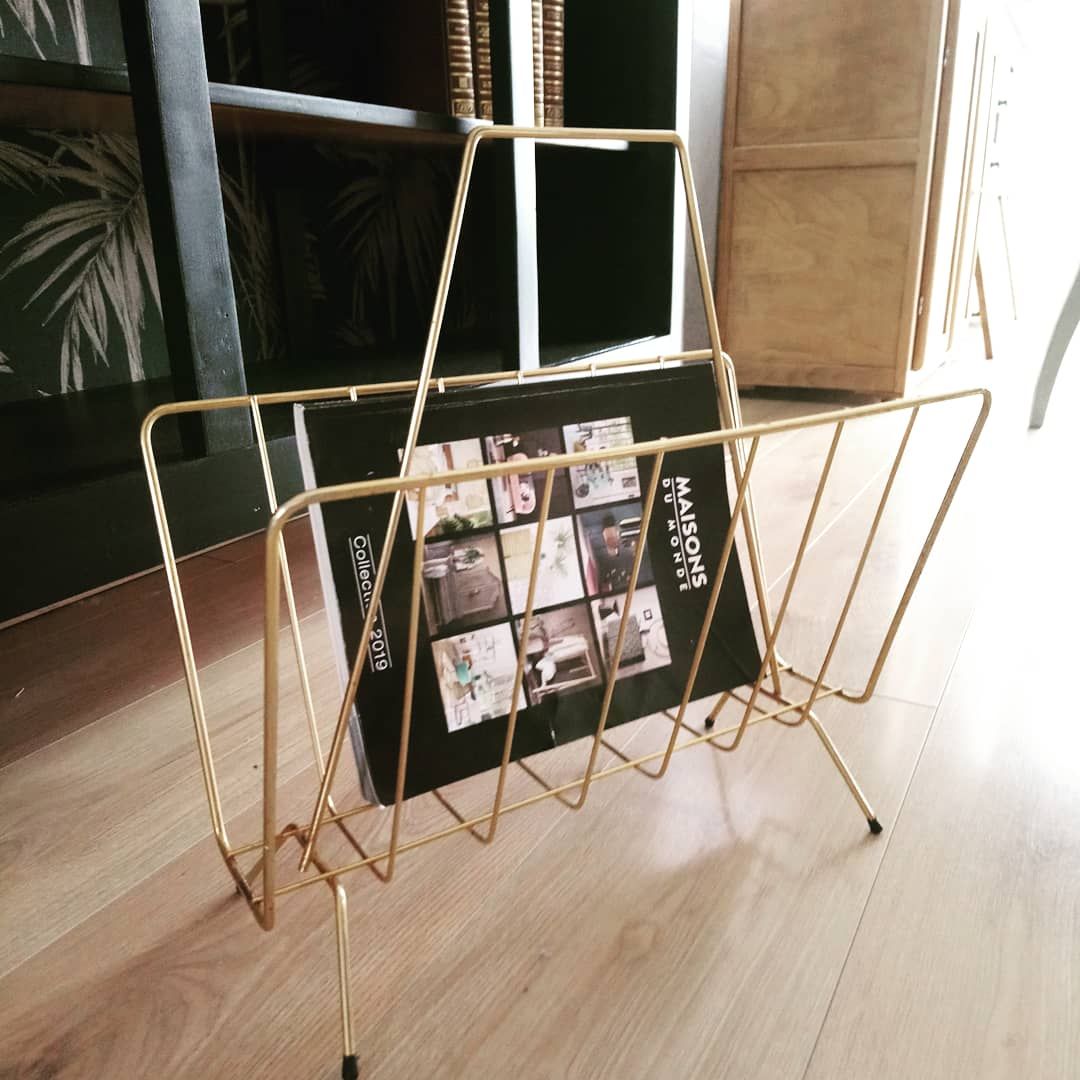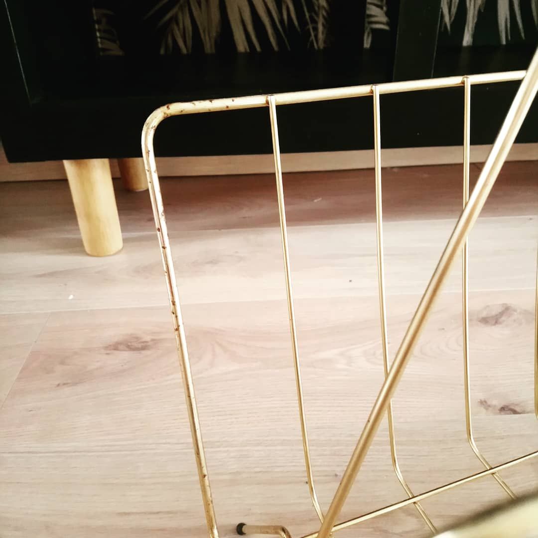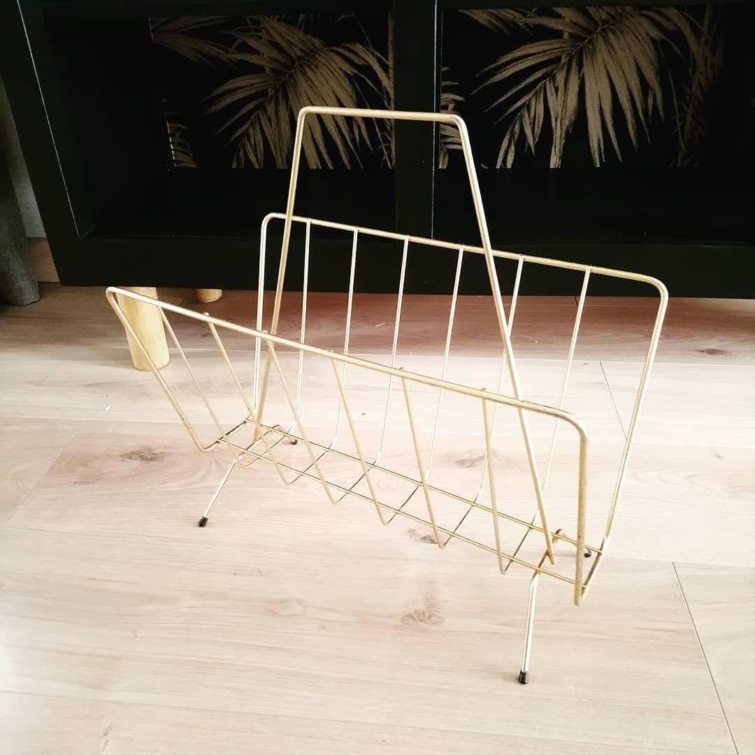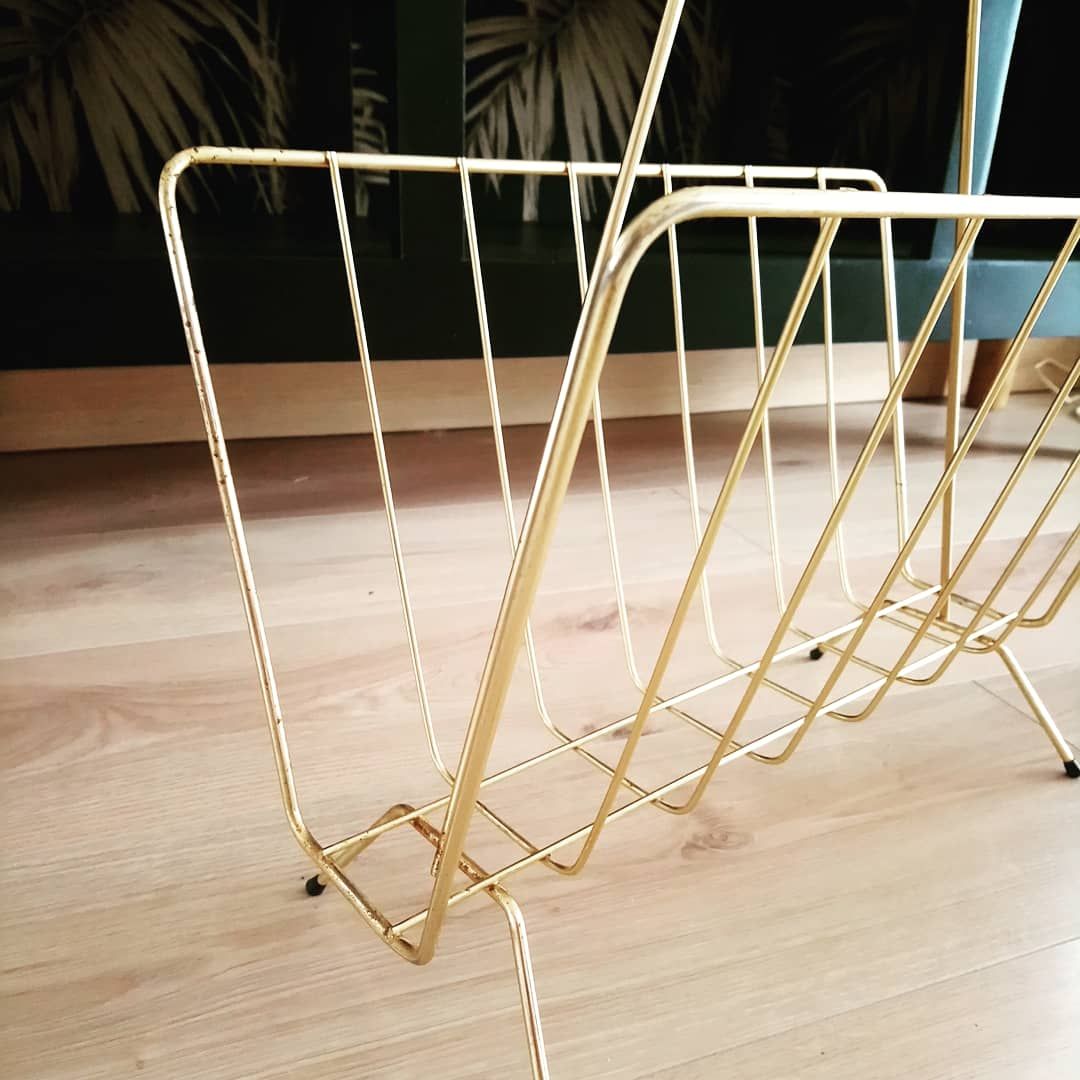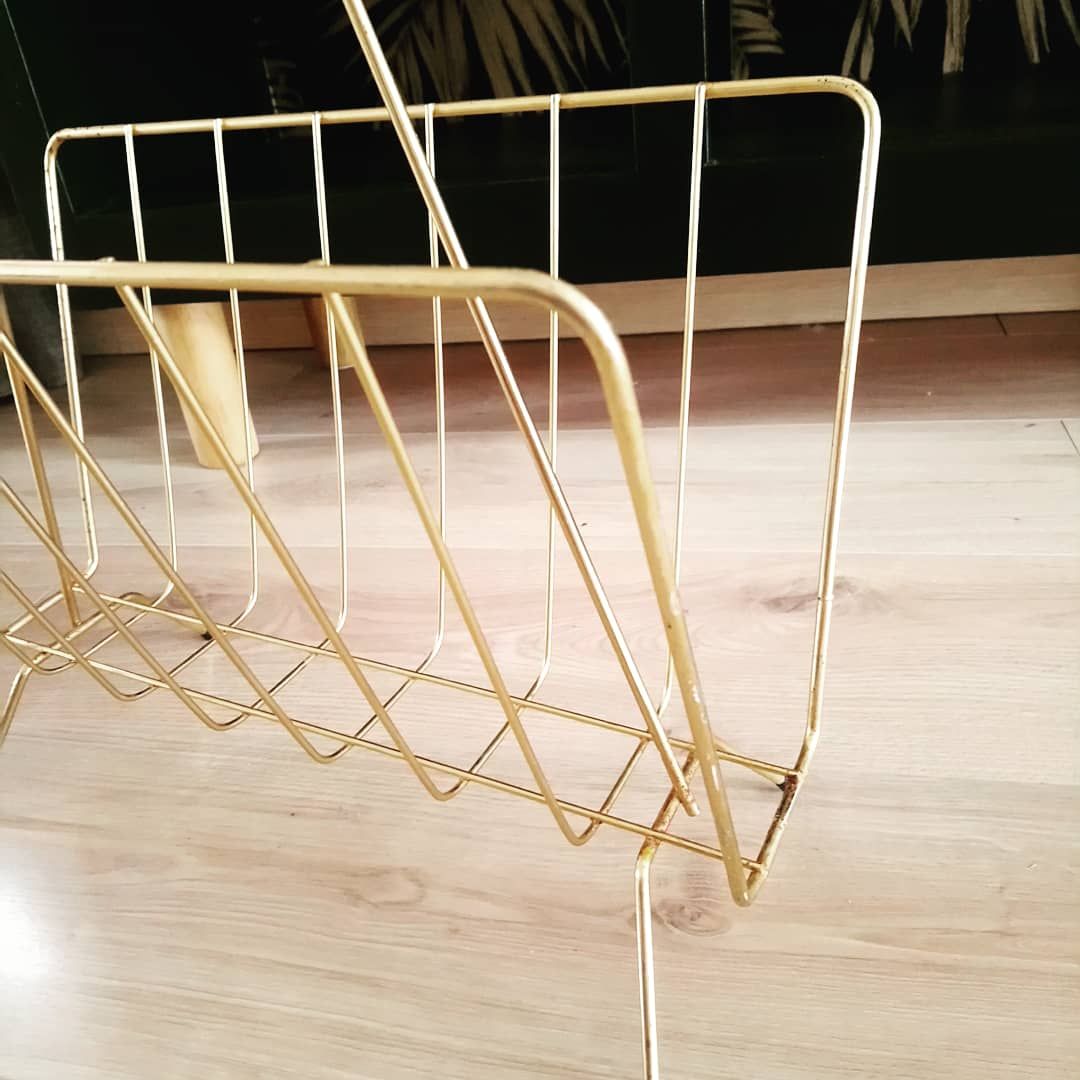 Porte revues vintage en métal doré. Sobre et chic. (quelques points de rouille voir sur un coin photo)