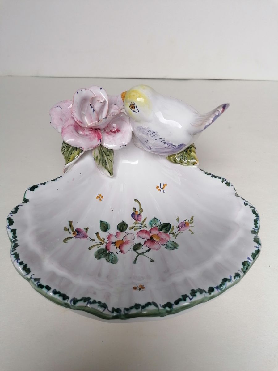Vide poche Moustiers oiseau fleur barbotine