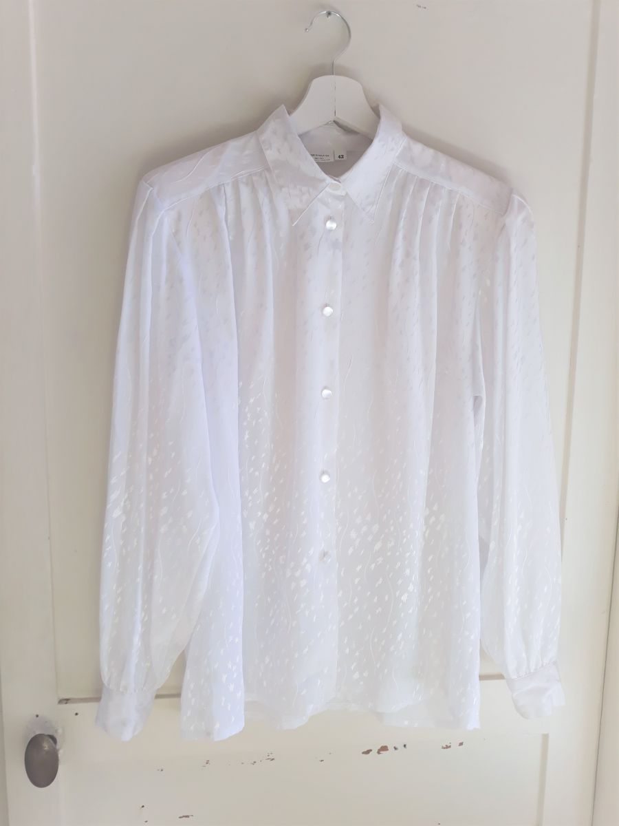 Chemise vintage 1970's blanc motifs floraux irisésPièce inco