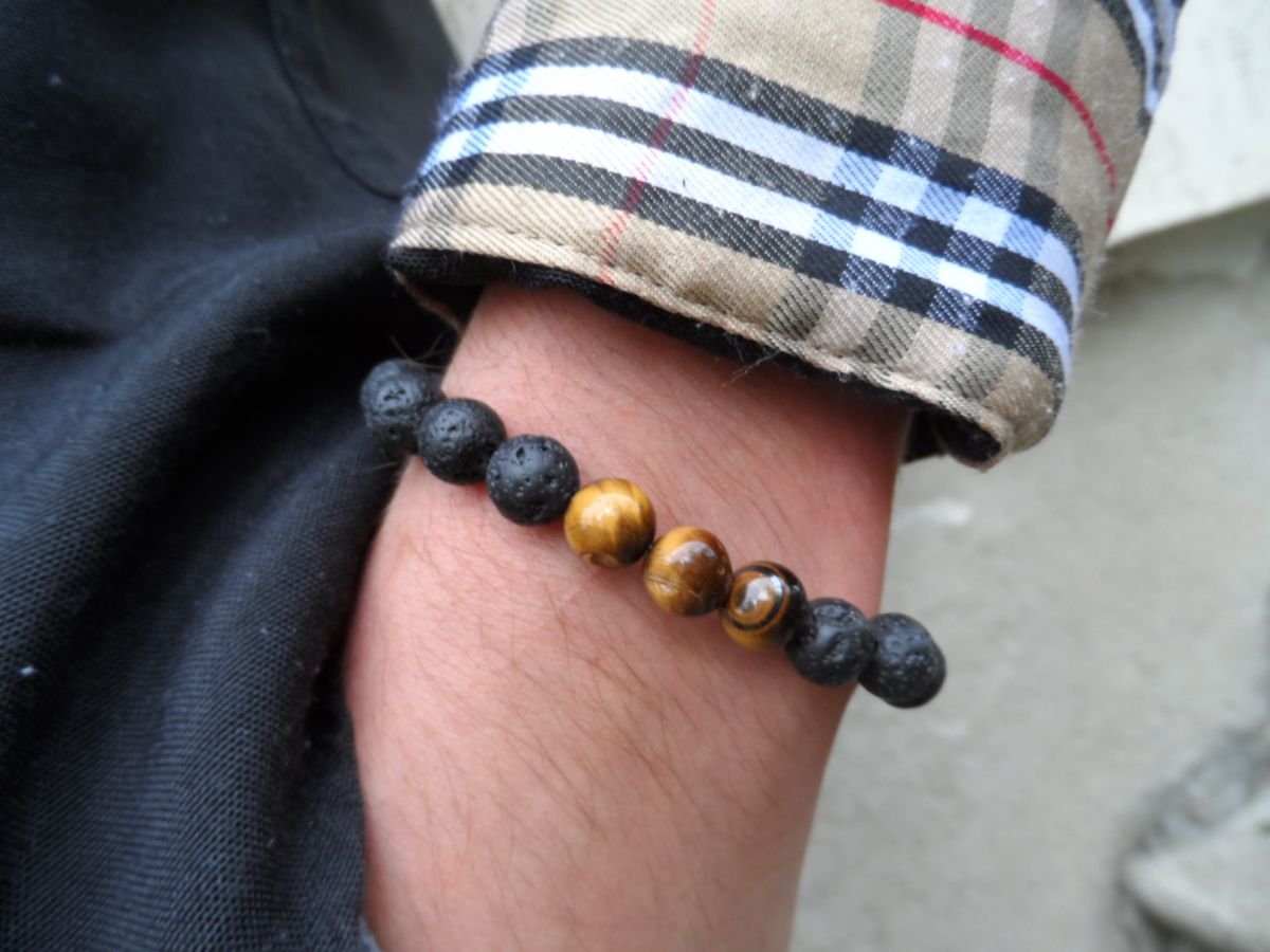 Bracelet avec pierres véritables : pierre de Lave et Œil de tigre