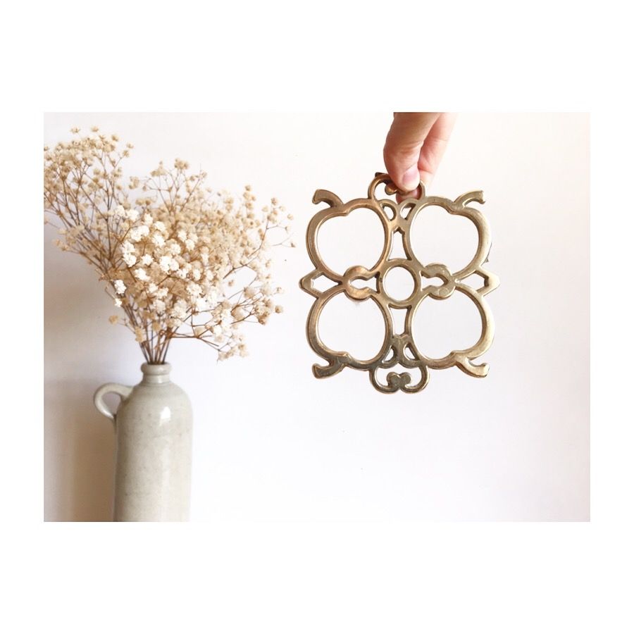 Quelques petites pommes en laiton surmontées par 4 petits pieds pour dessous de plat.