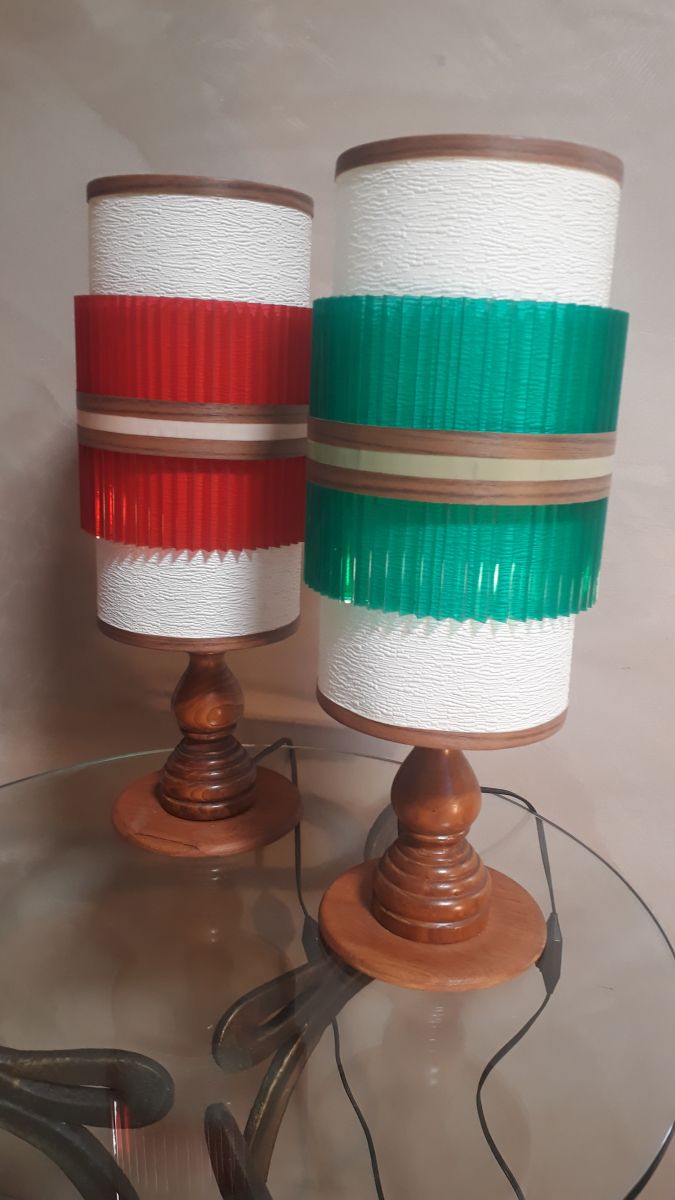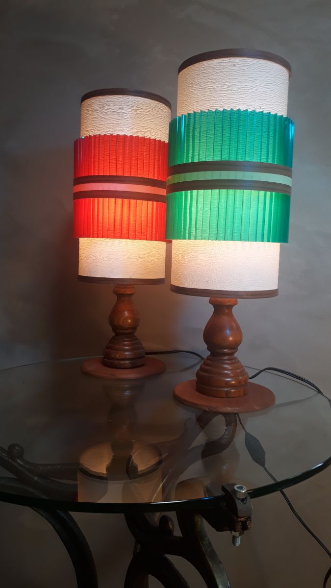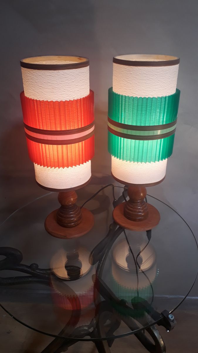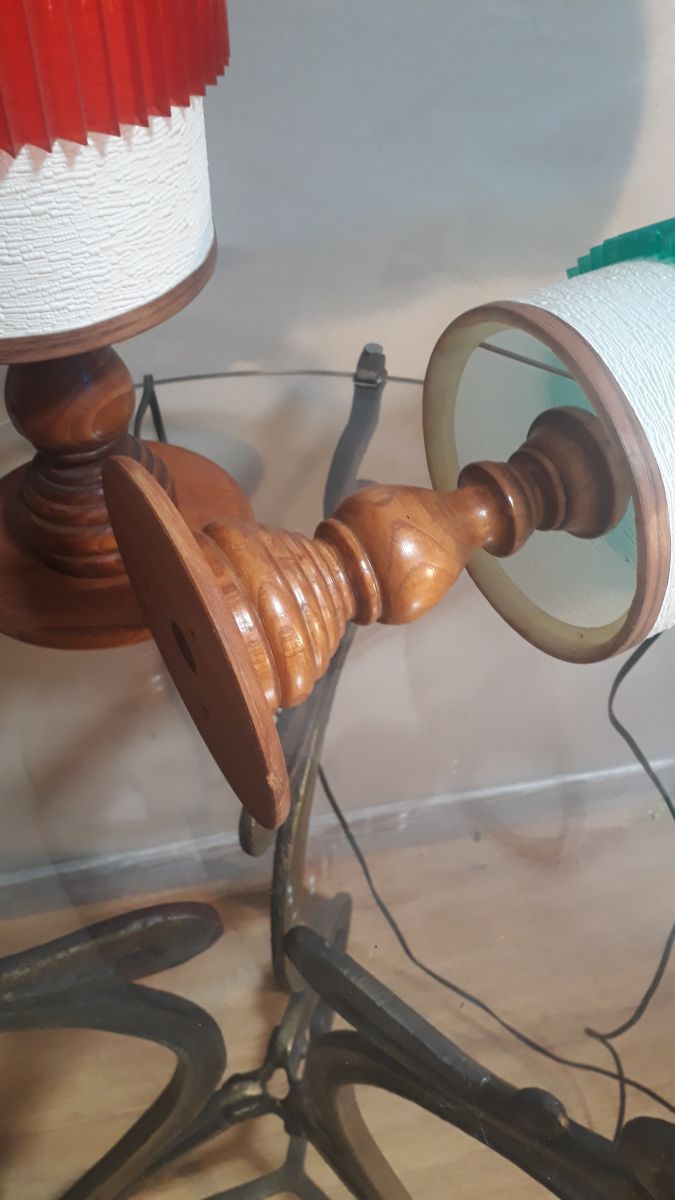 duo de lampes scandinave en bois tournè , 1955 a70s etat r