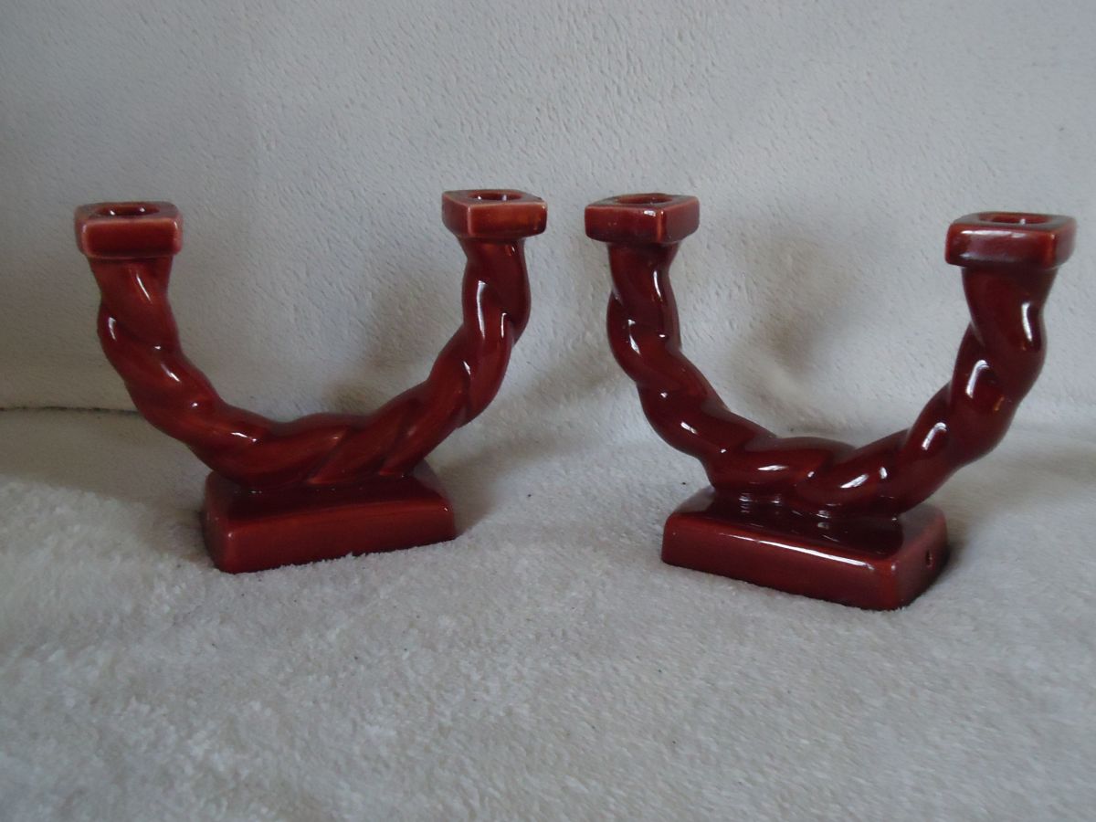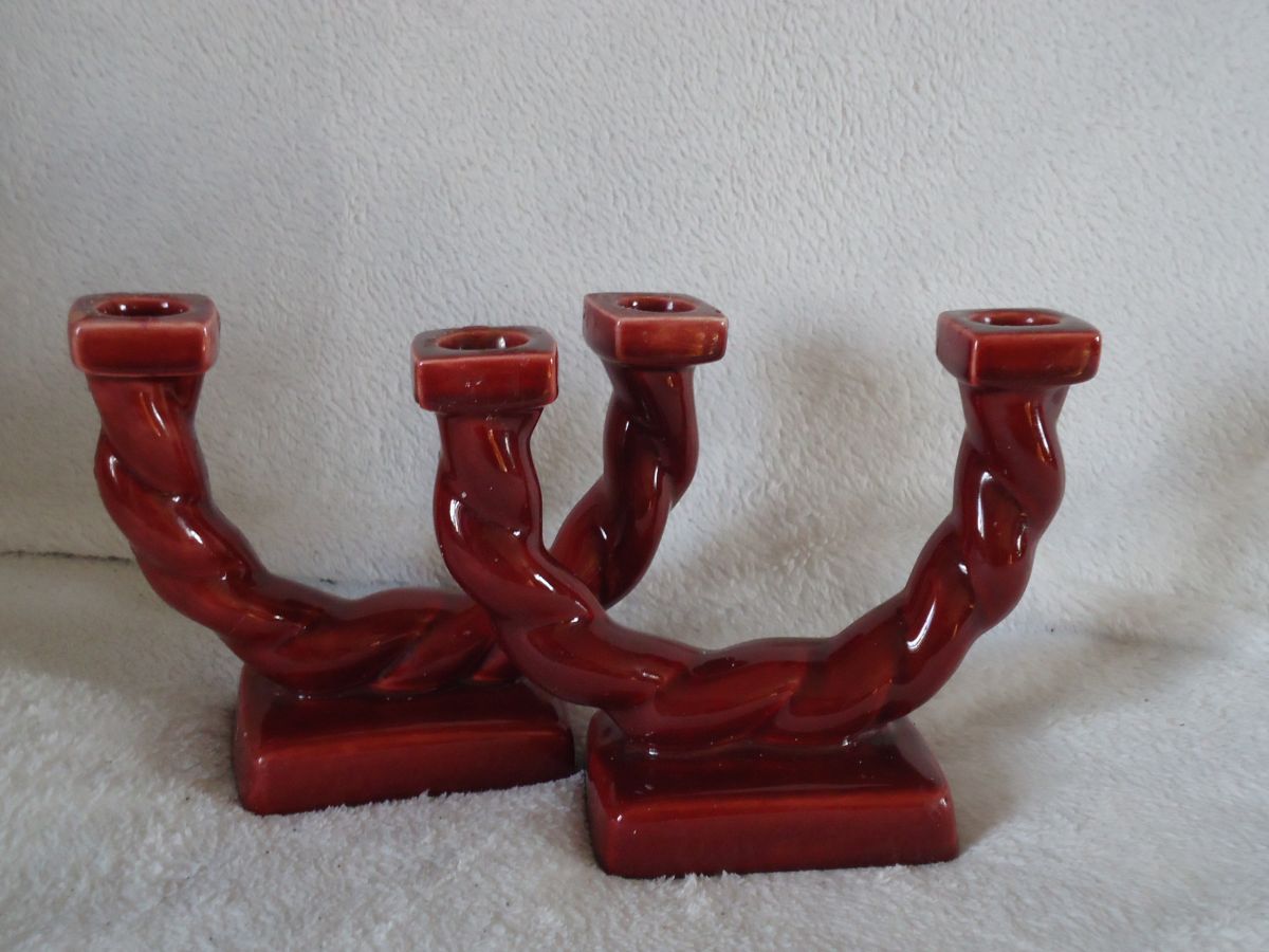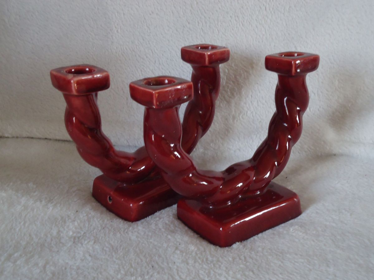 2 Bougeoirs rouges bordeaux Vintage Hauteur 16cm année 1950