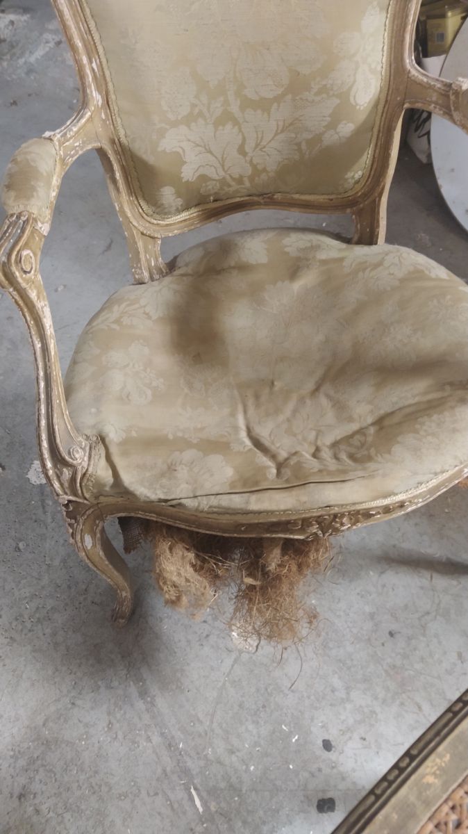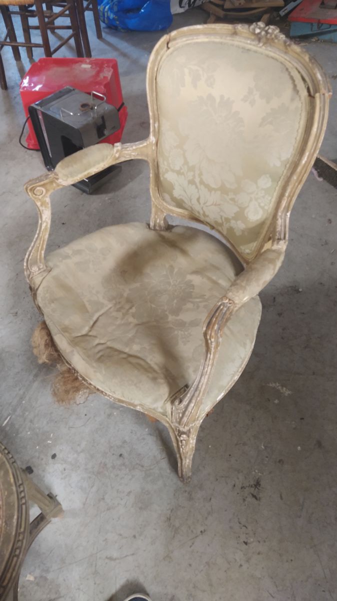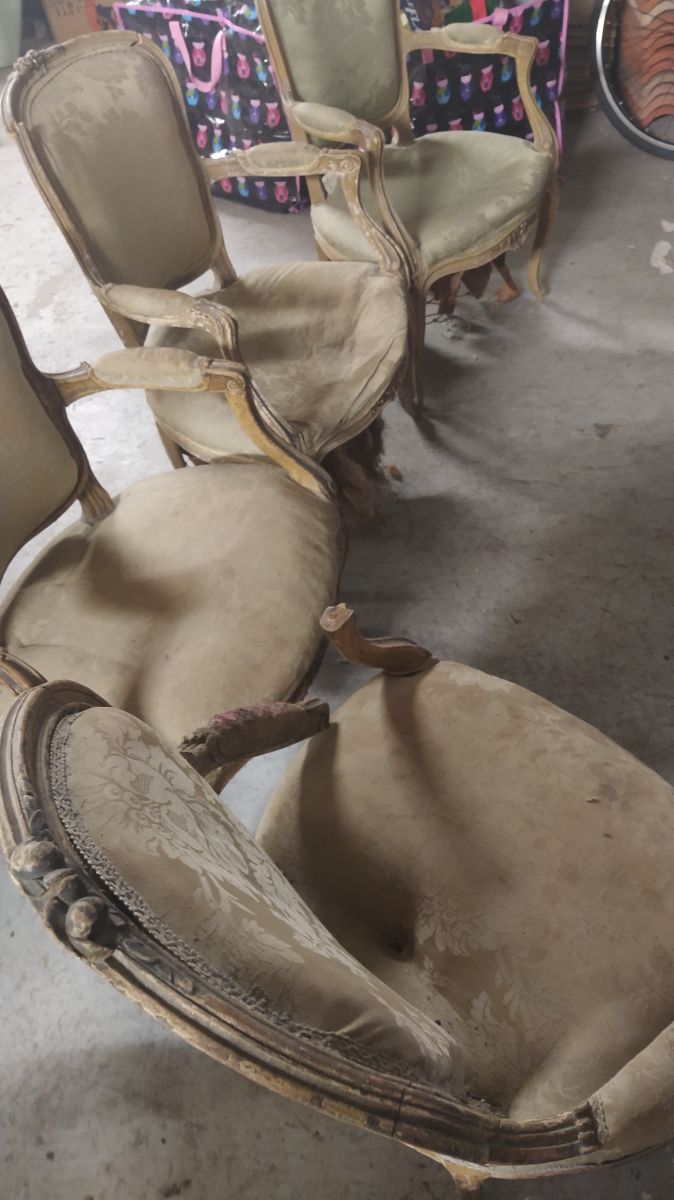 Fauteuils Voltaire (4) à restaurer, revêtement vert.