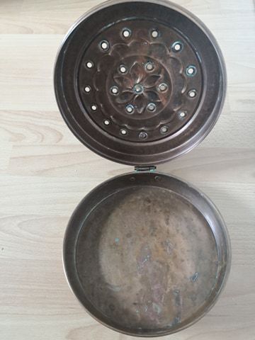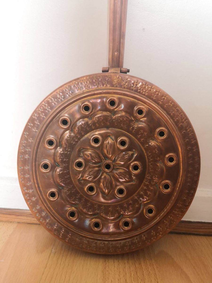 Bassinoire en cuivre estampillée "Villedieu" en bon état