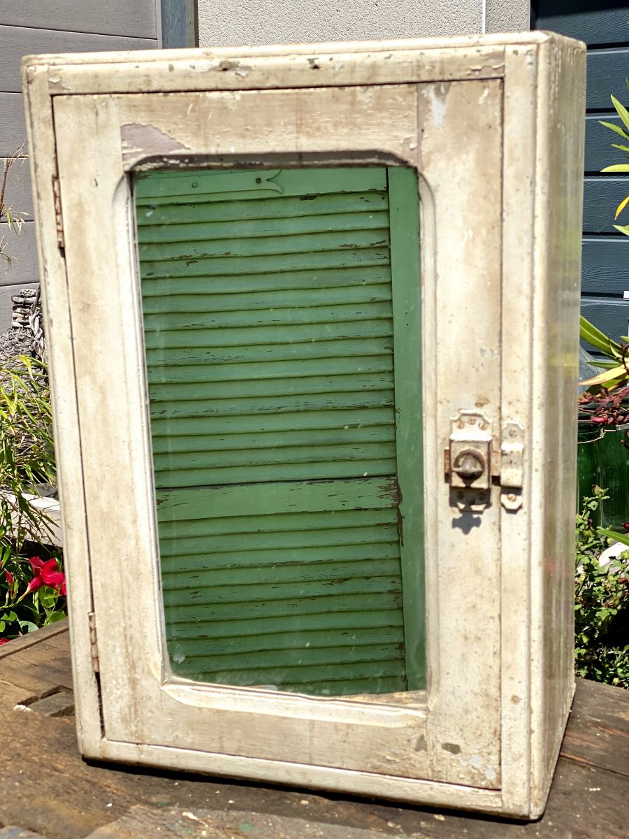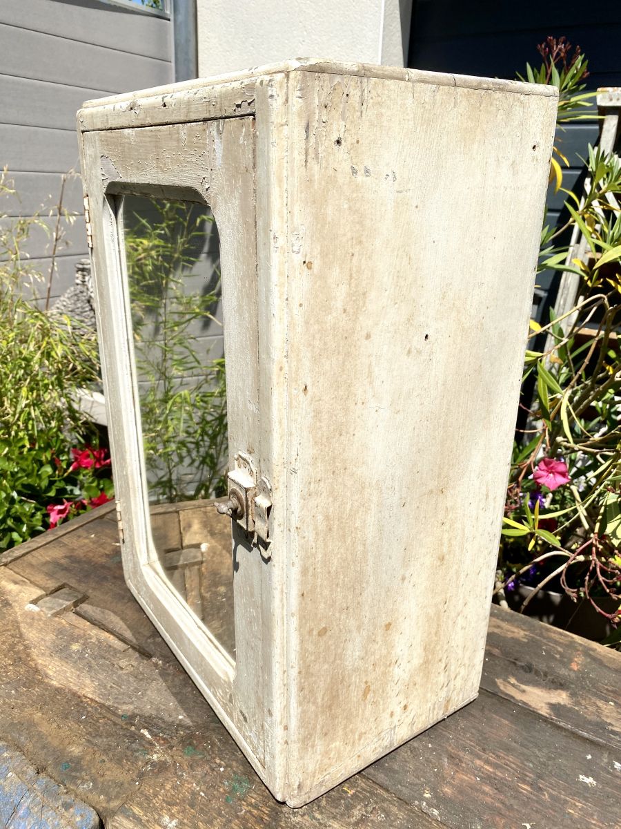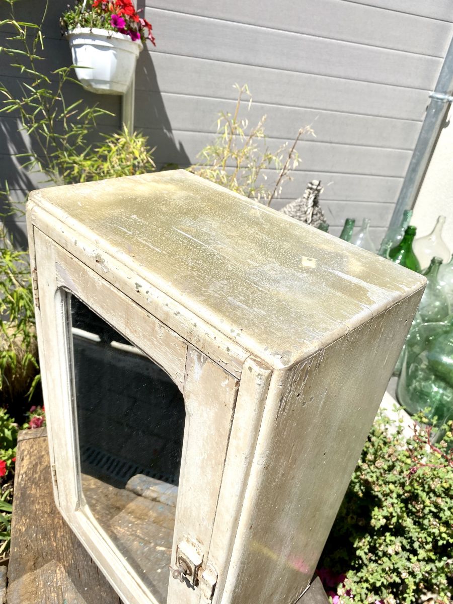 Jolie armoire de toilette ou à pharmacie avec une jolie patine. Armoire en bois, miroir en façade en bon état. Intérieur avec plusieurs compartiments. Dimensions: h58 X l40 X p25cm.