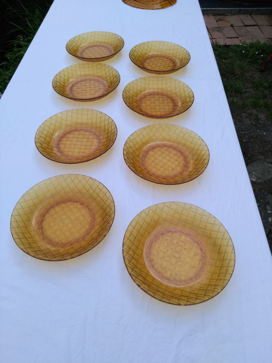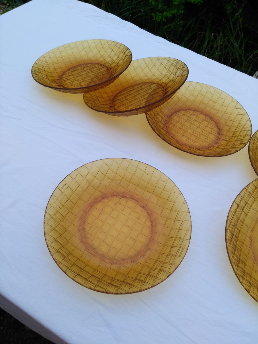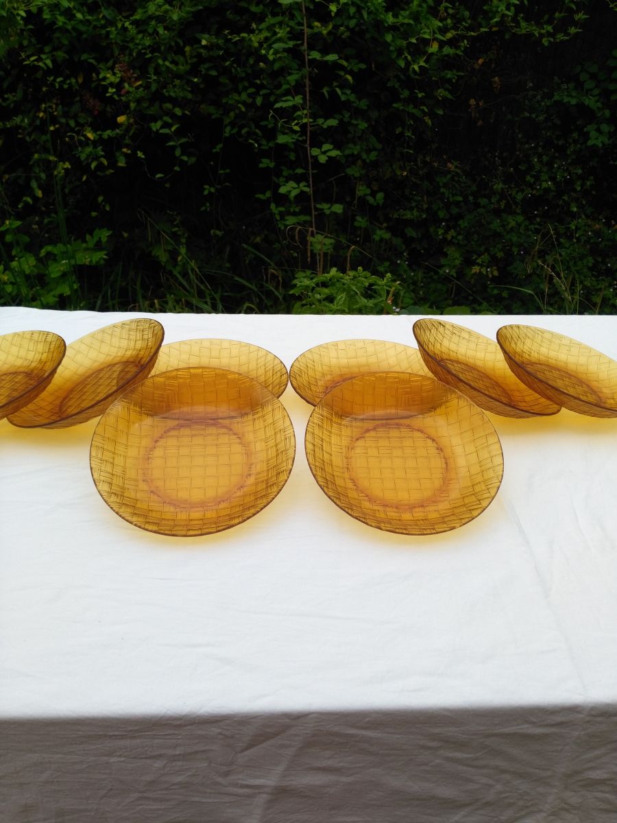 8 assiettes creuses vereco, motif cannage, coloris havane