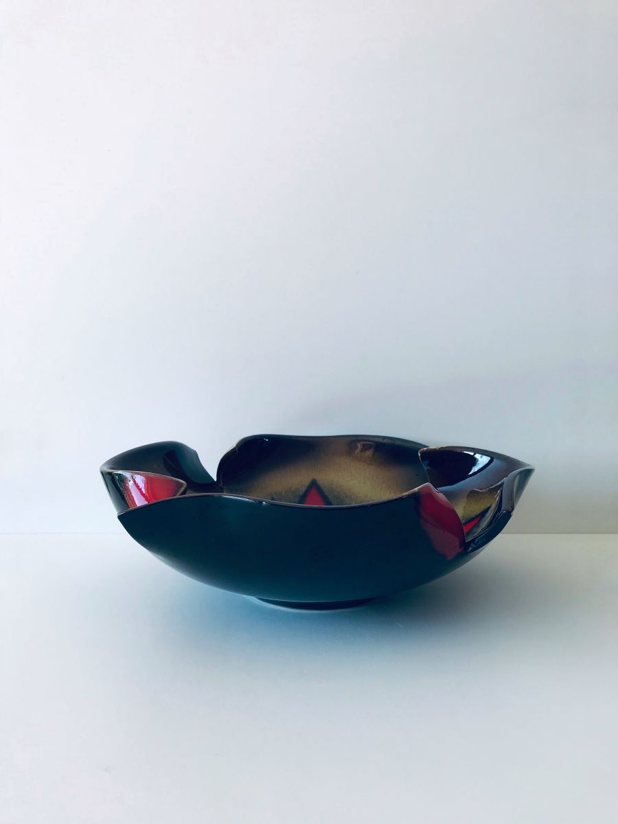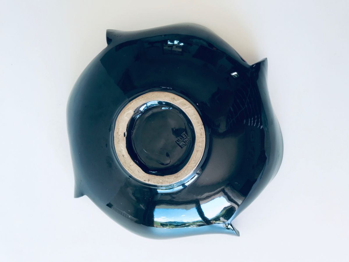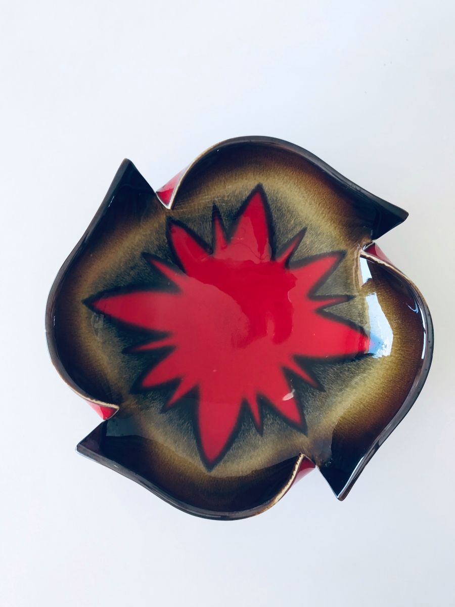 Grand et original saladier vintage en céramique signé Jamet Paris. Ce saladier ou grande coupe Pourra accueillir des fruits, des desserts ou entrées comme des salades. On aime son design avec sa grosse étoile centrale et ses couleurs très vintage ainsi que l’originalité de de son pourtour découpé et courbé !!