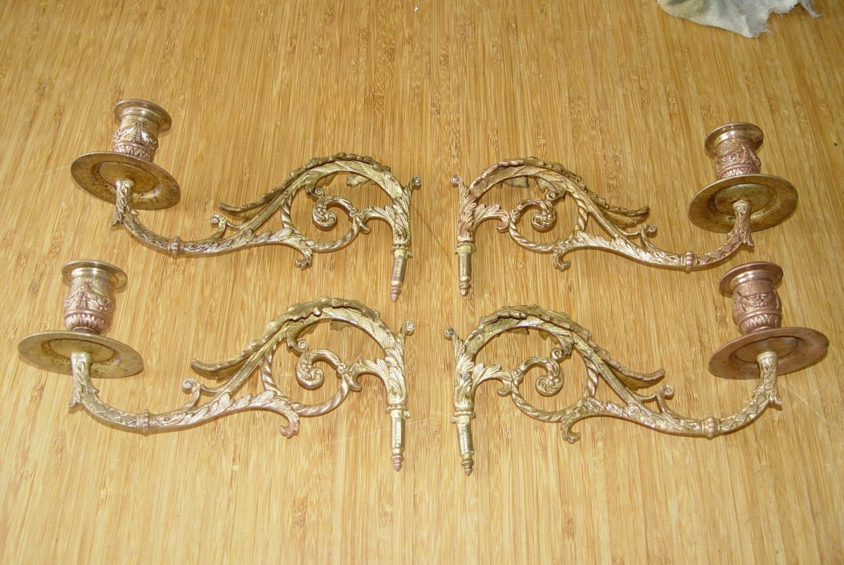 Voici 2 paires de bougeoirs chandeliers de piano en bronze massif baroques à motif végétal.