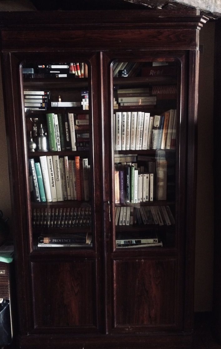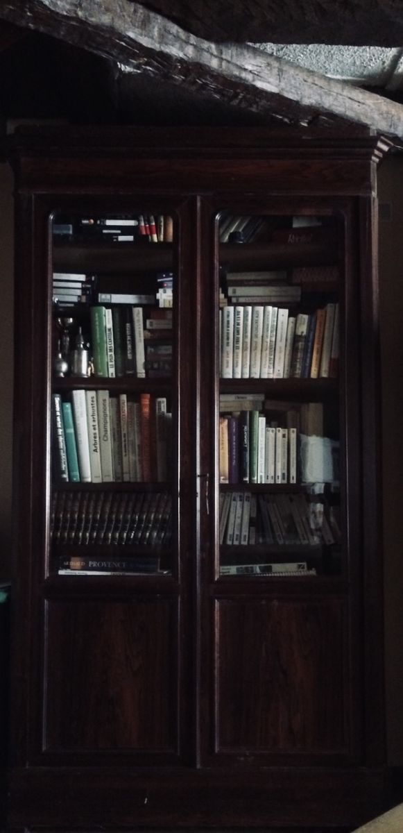 Bibliothèque en chêne avec porte en verre. 4 étages