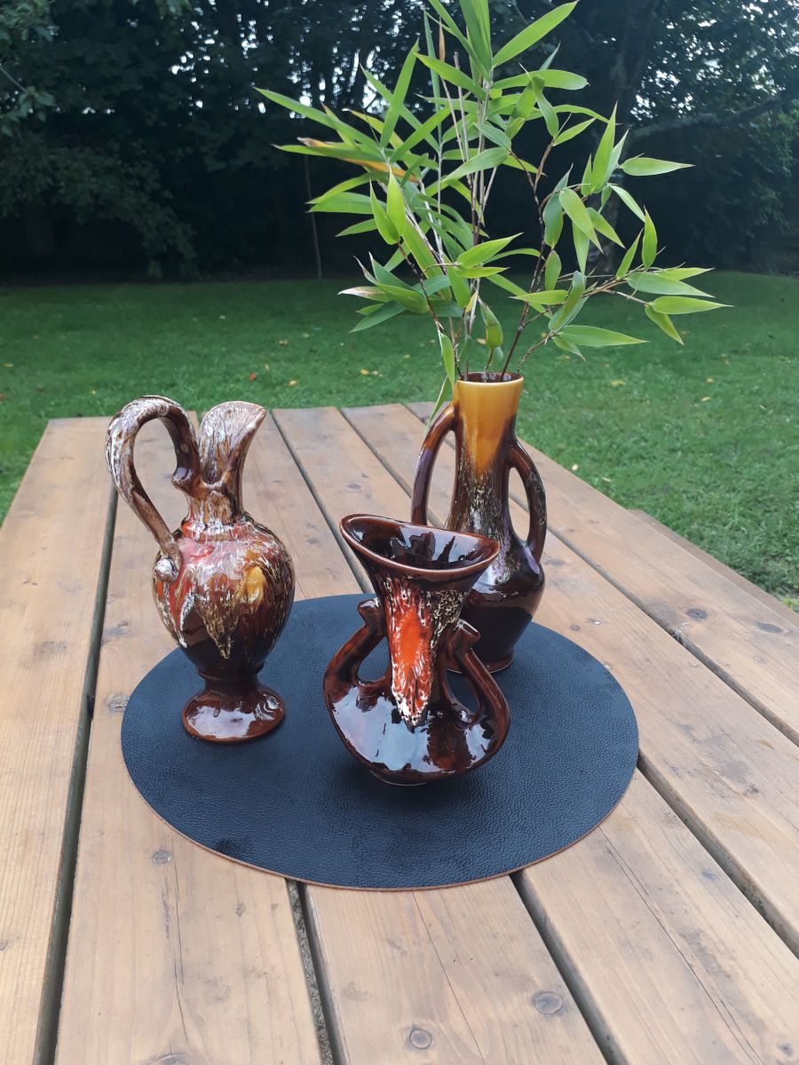 Lot de 3 vases en faïence, style Vallauris mais non estampillé.