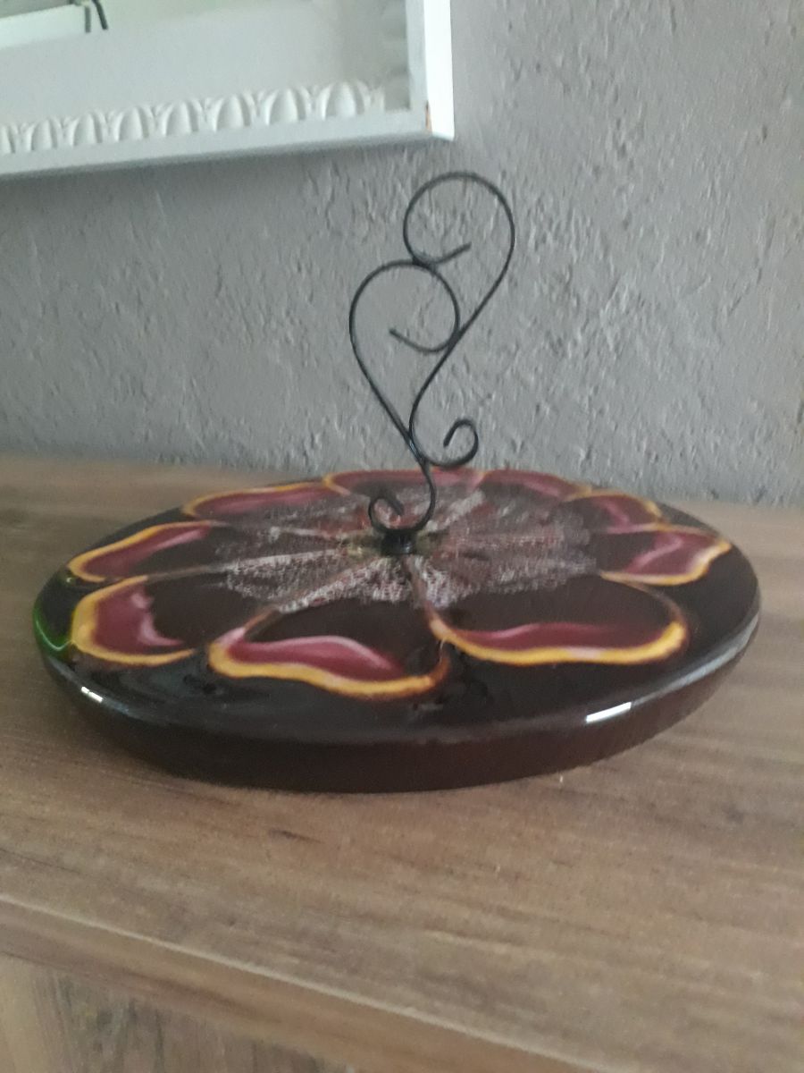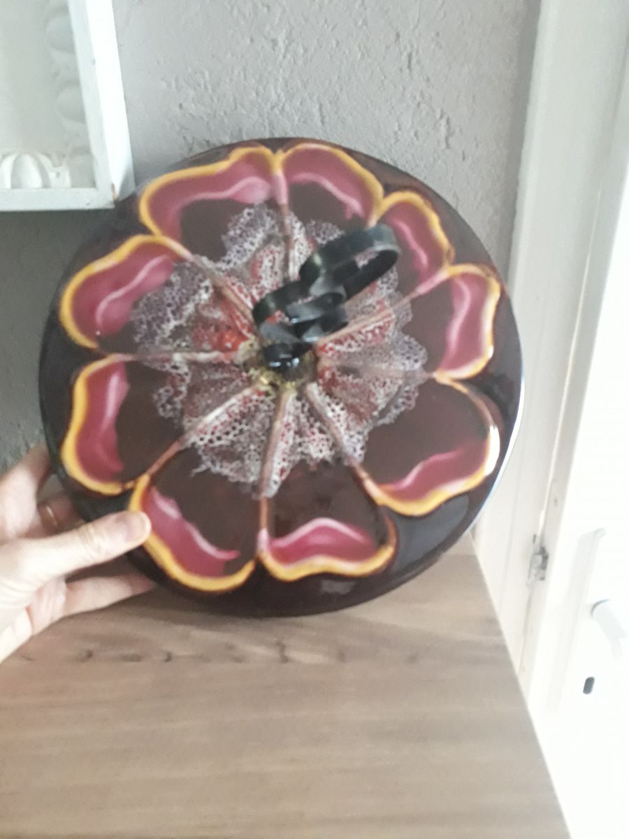 Couleurs originales et chatoyantes pour ce plateau à fromage estampillé Vallauris.