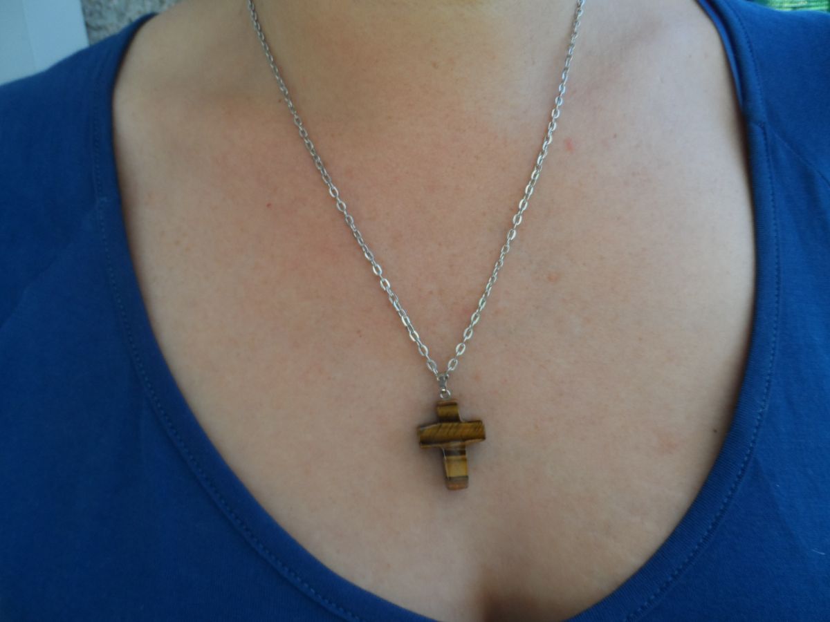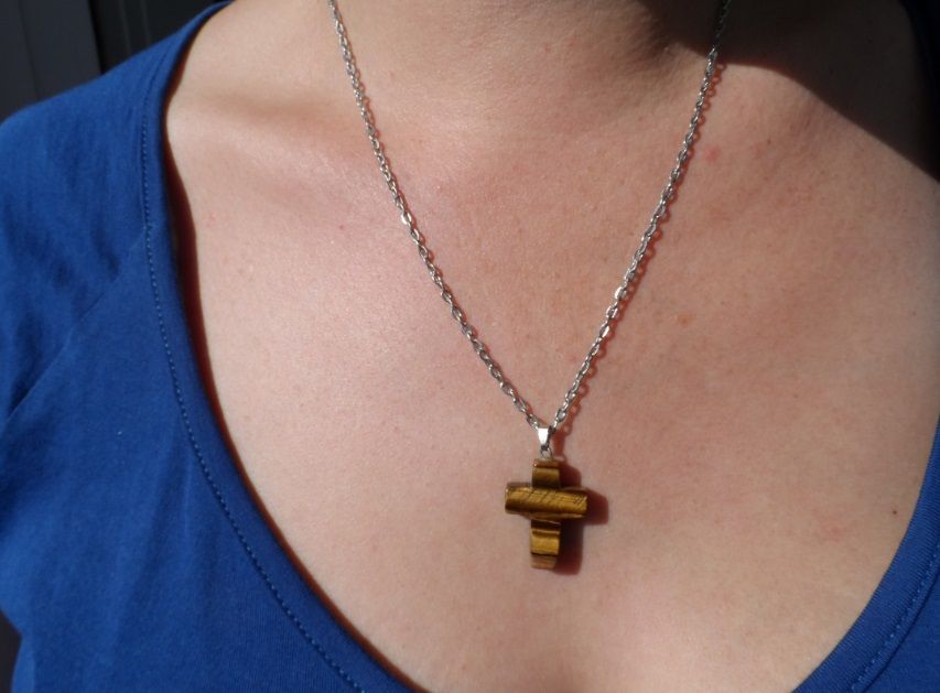 Pendentif pierre Œil de Tigre véritable avec chaine plaqué Argent