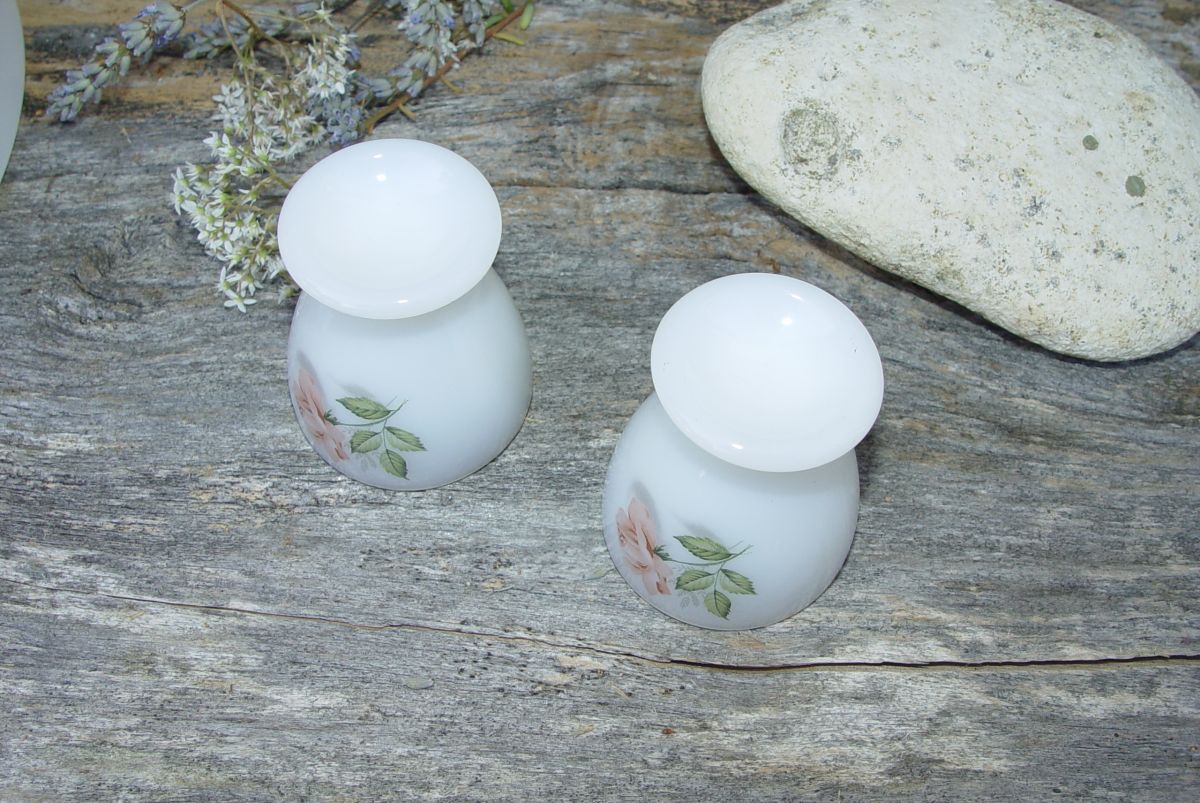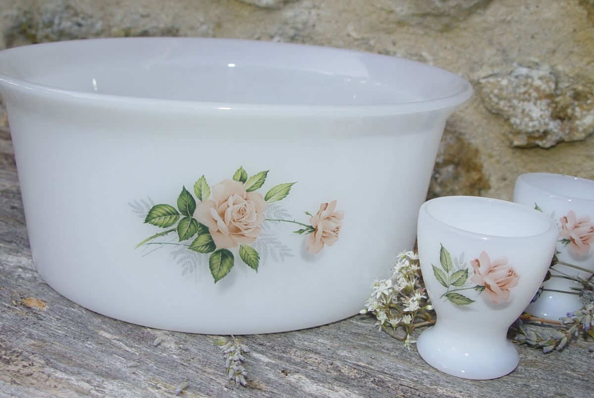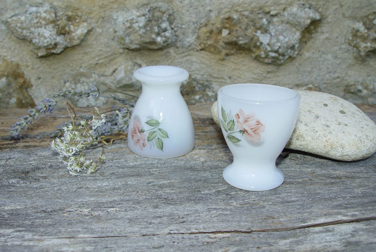 Voici 2 mignons petits coquetiers Arcopal à motif de roses en parfait état.