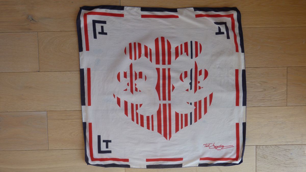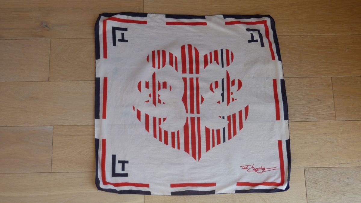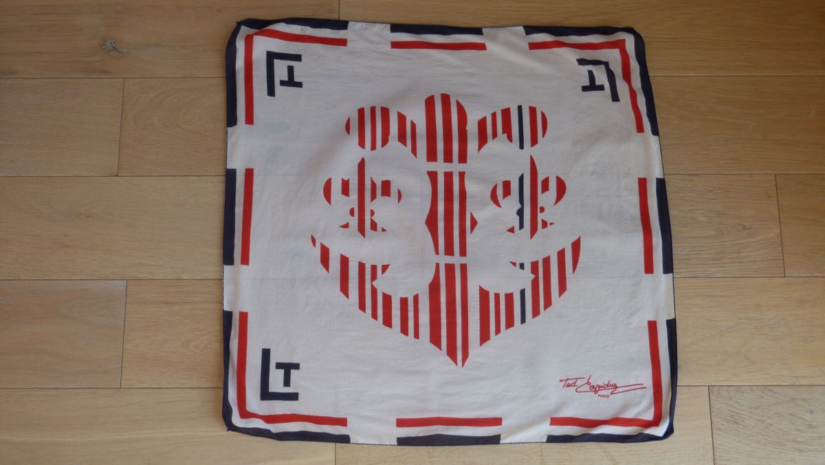Motif ancre marine aux coloris bleu, blanc, rouge.