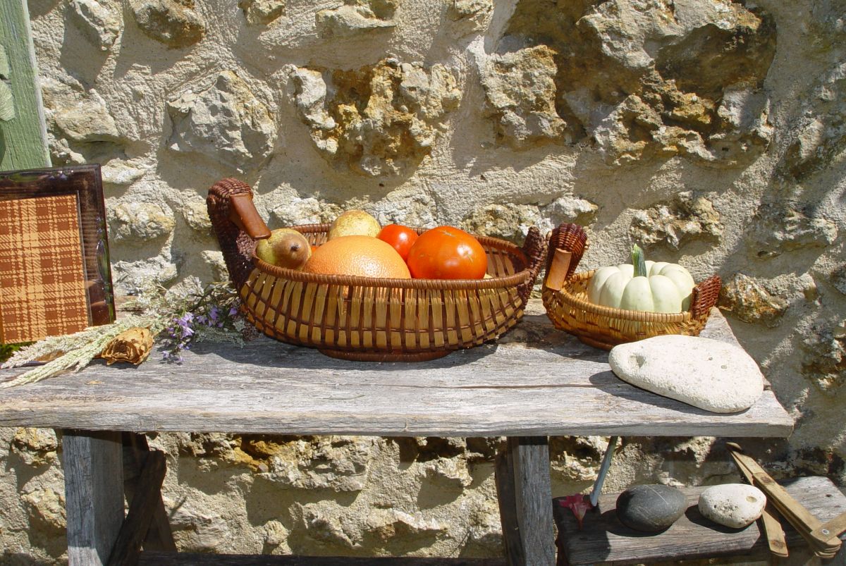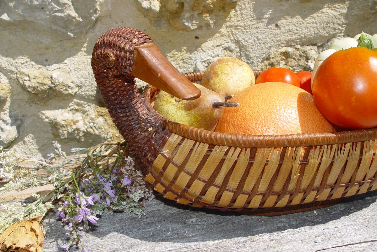 A utiliser comme corbeille à fruits (ici avec un peu de la récolte du jour au jardin - euh pas le pomelo hein... ) vide-poches, rangements dans la salle de bain, etc.