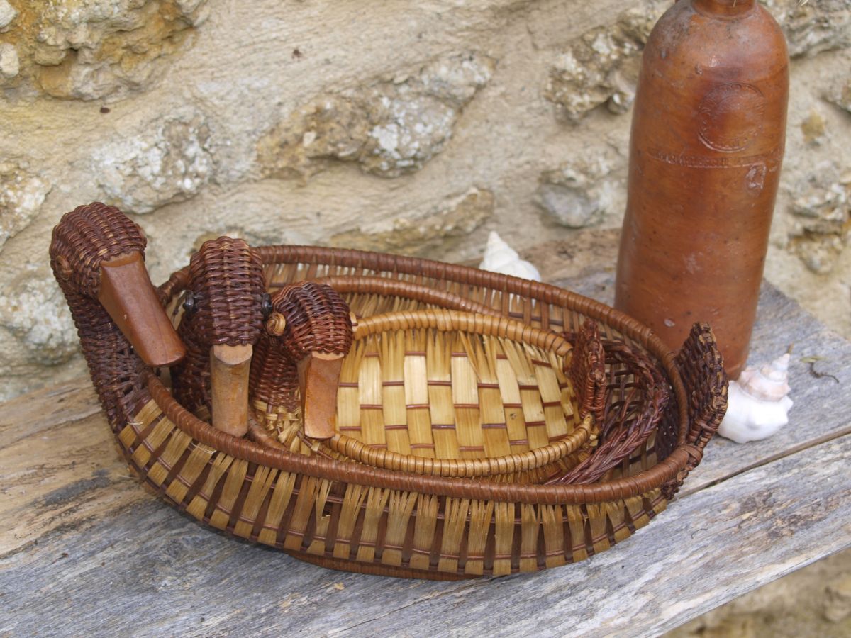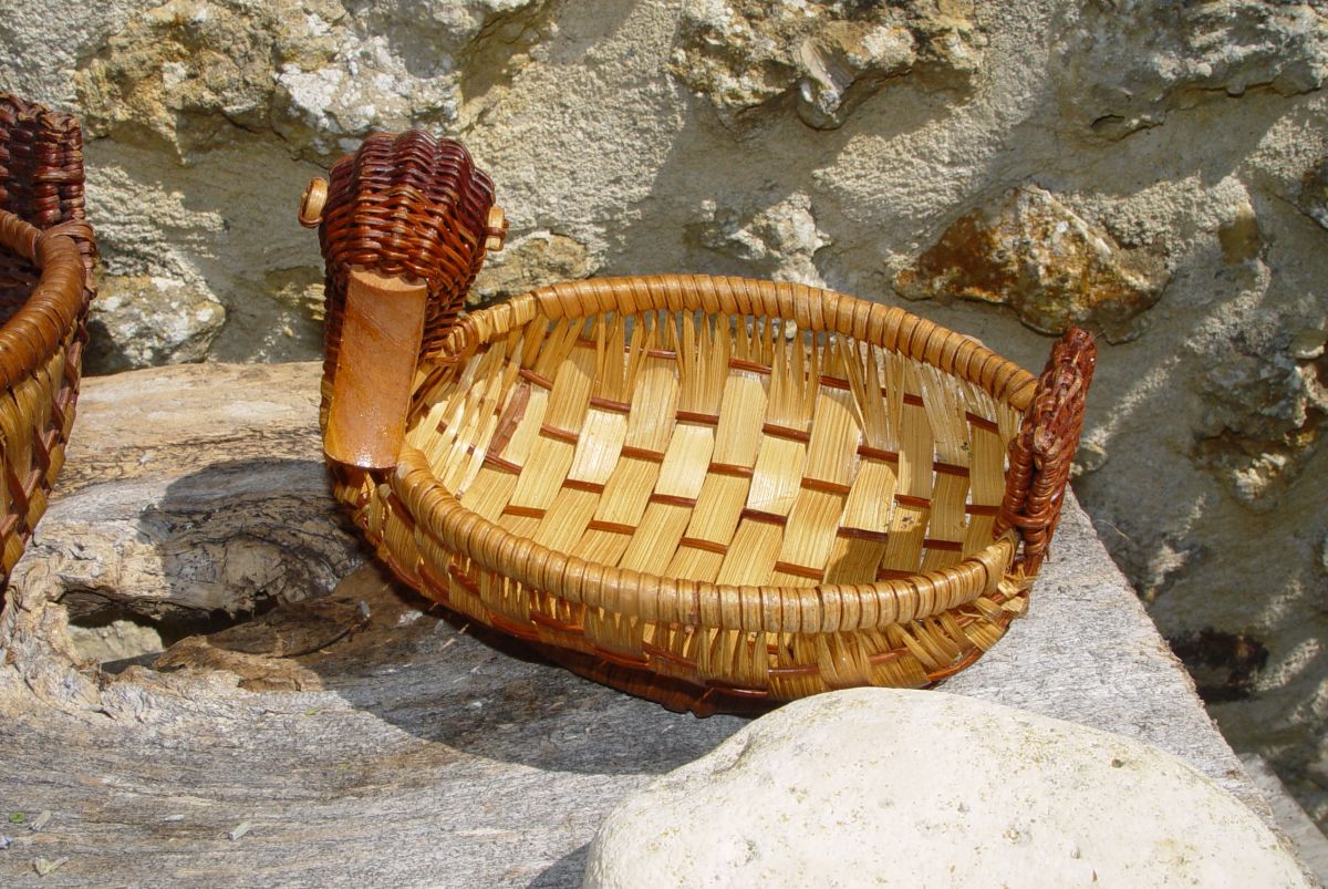 Voici 3 adorables paniers en forme de canard en rotin.