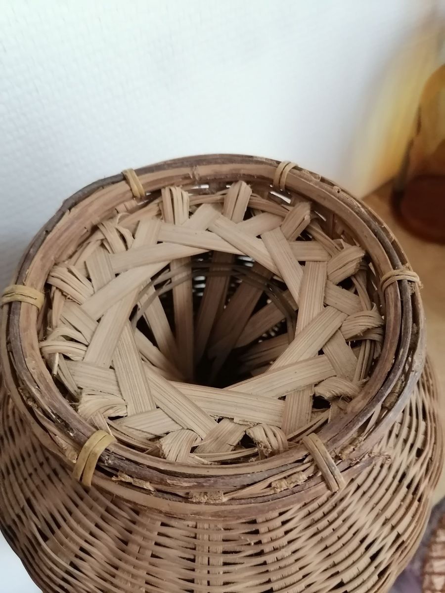 Vase pour fleurs séchées en osier. En bon état général.