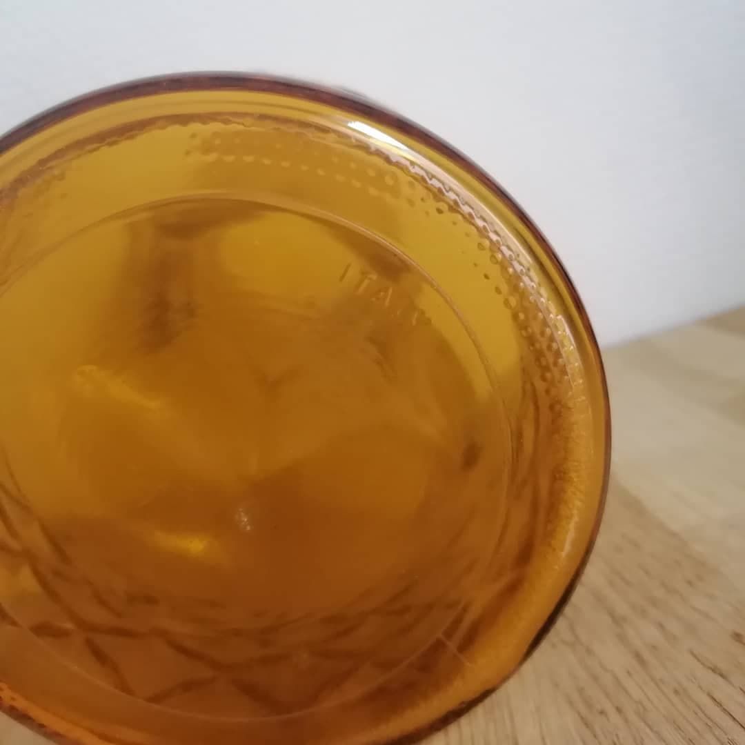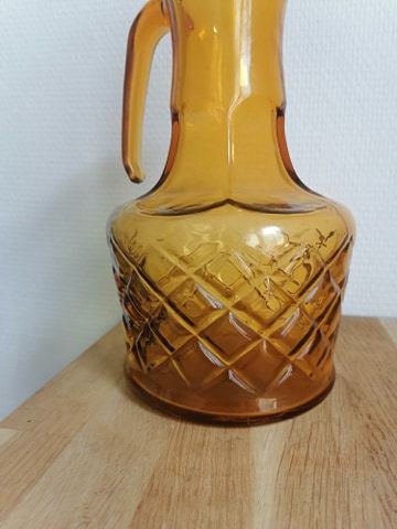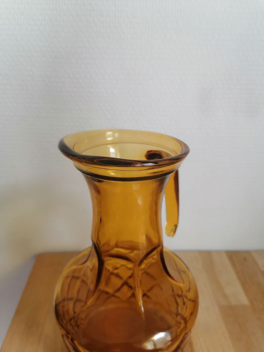 Pichet en verre jaune. En très bon état. Fabriqué en Italie.