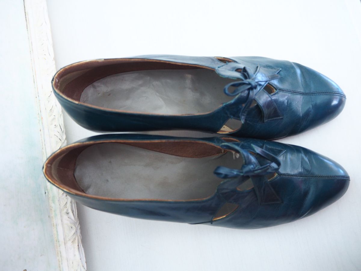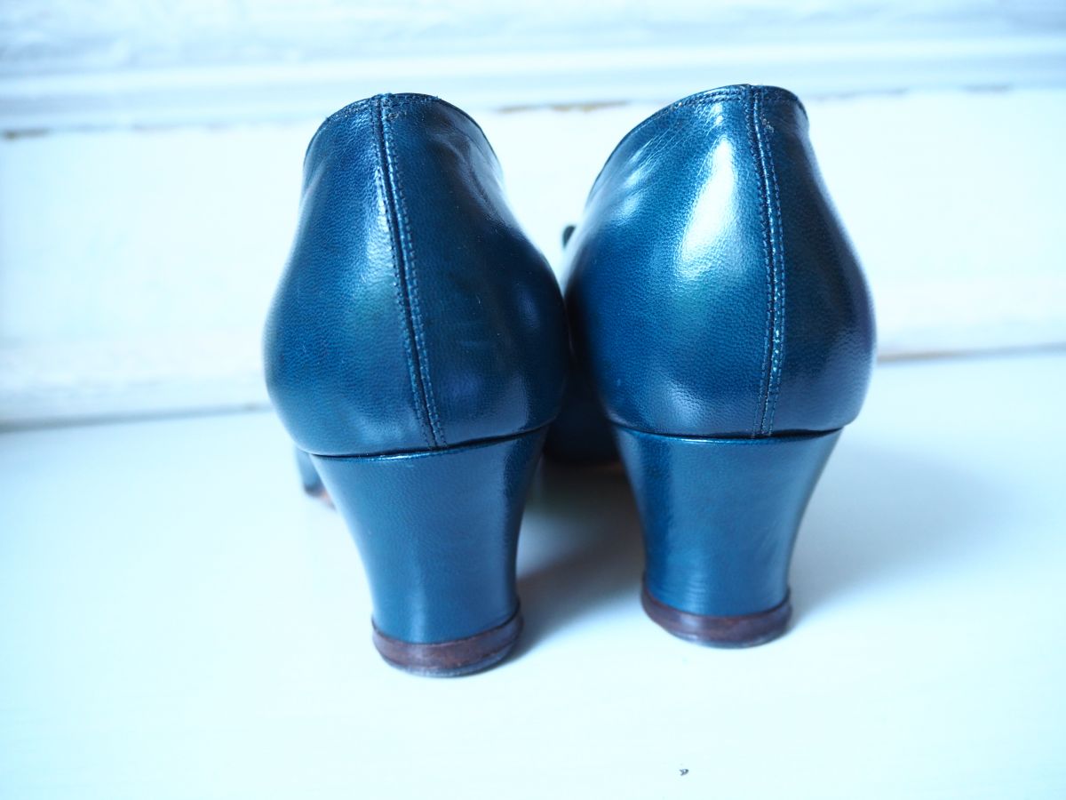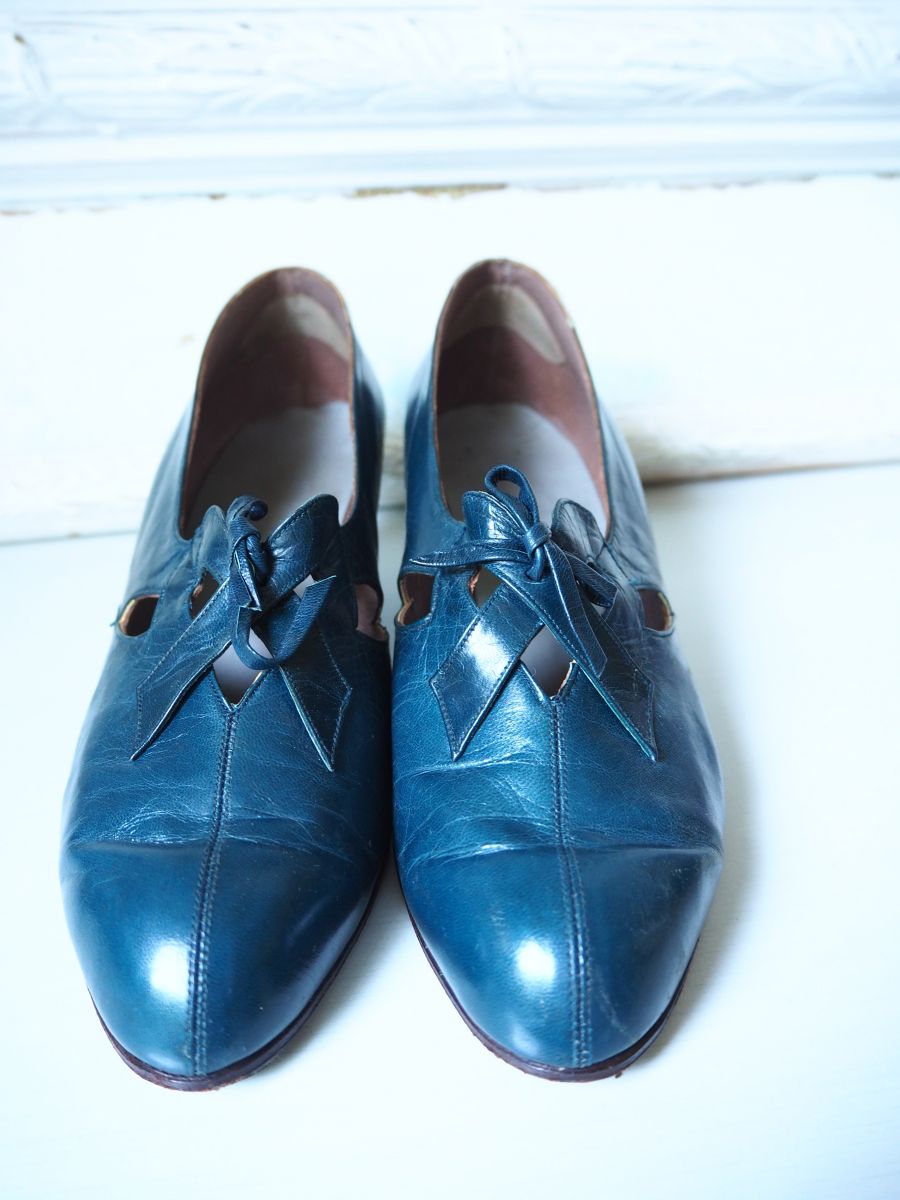 Chaussures derbies à talon en cuir bleu canard vintage 30's