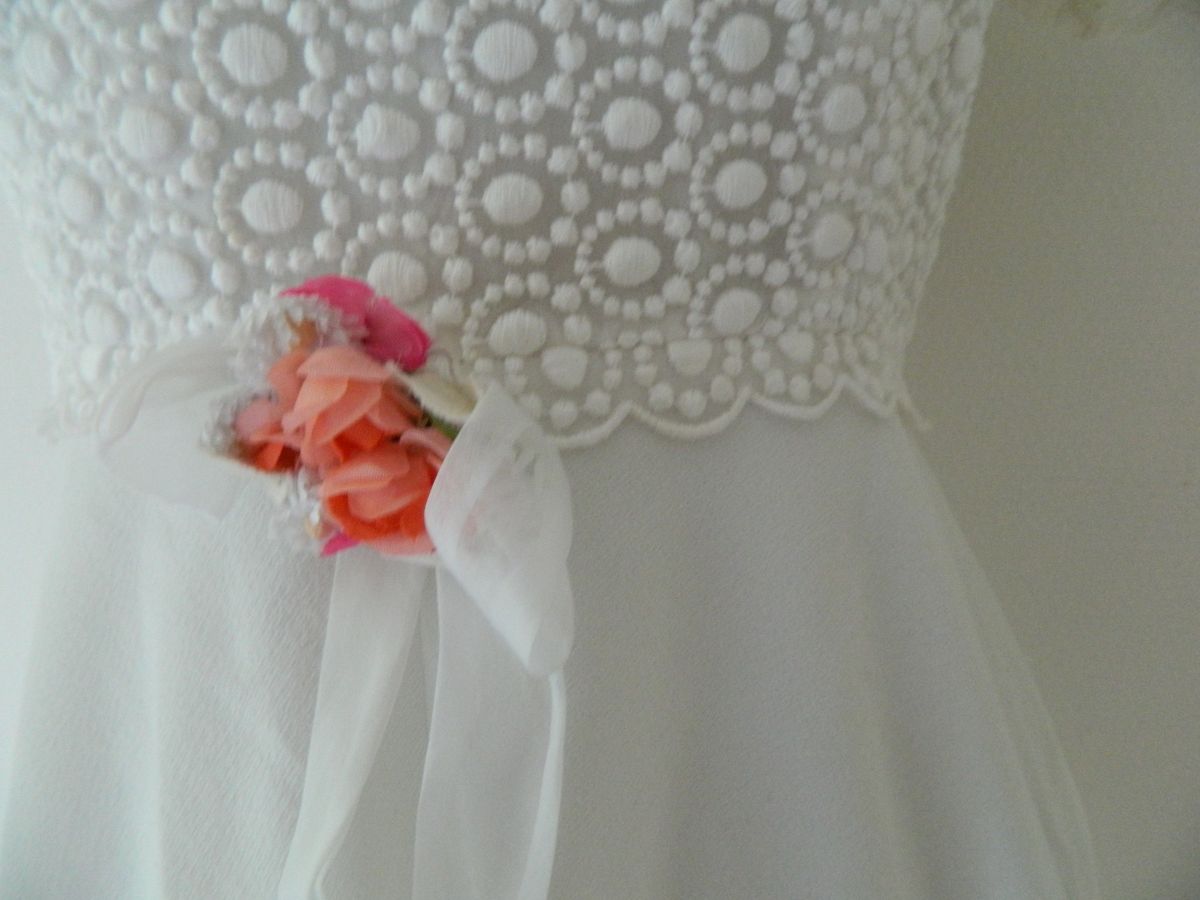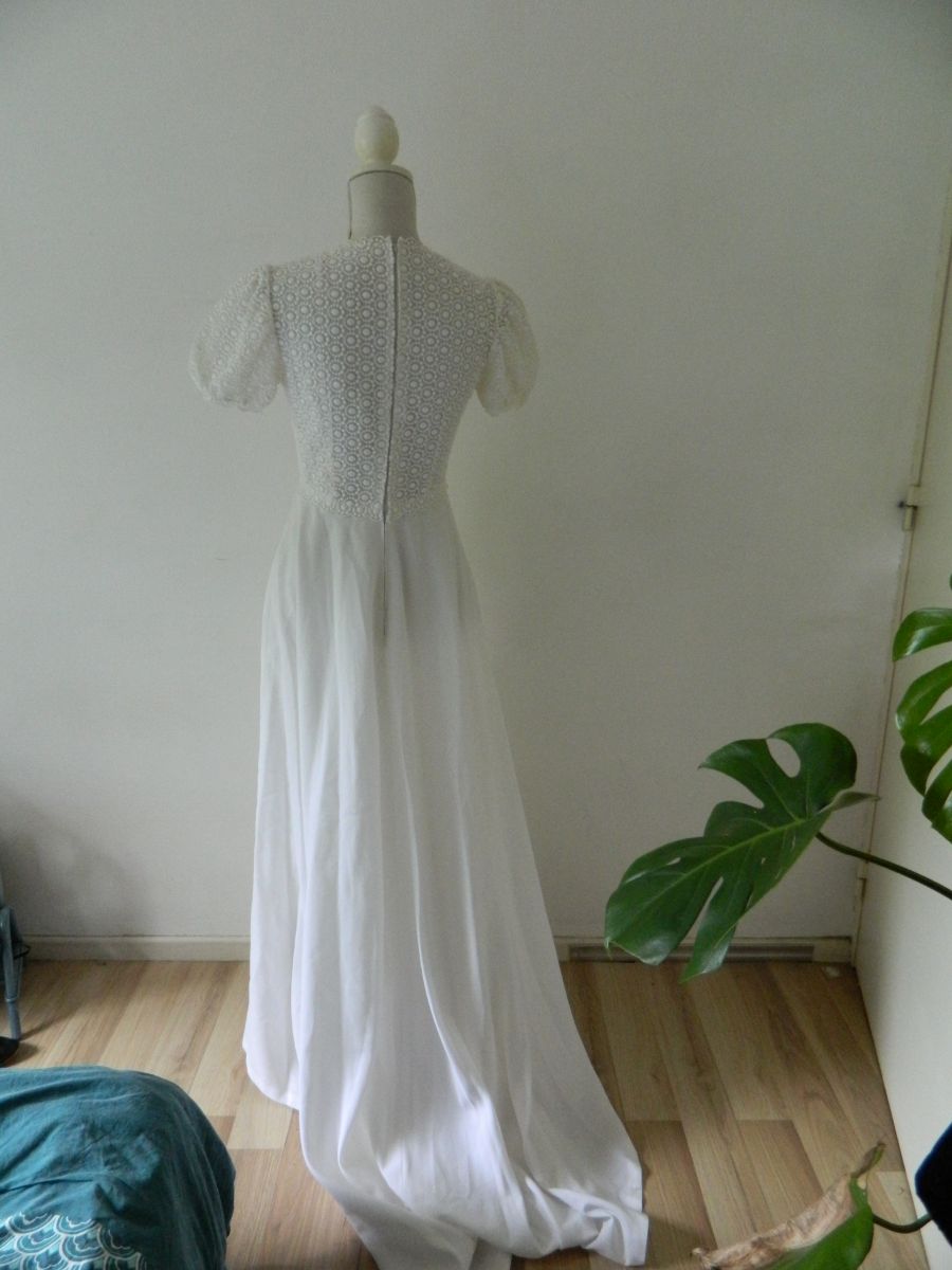 Robe de mariée hippie chic blanche brodée vintage 70's