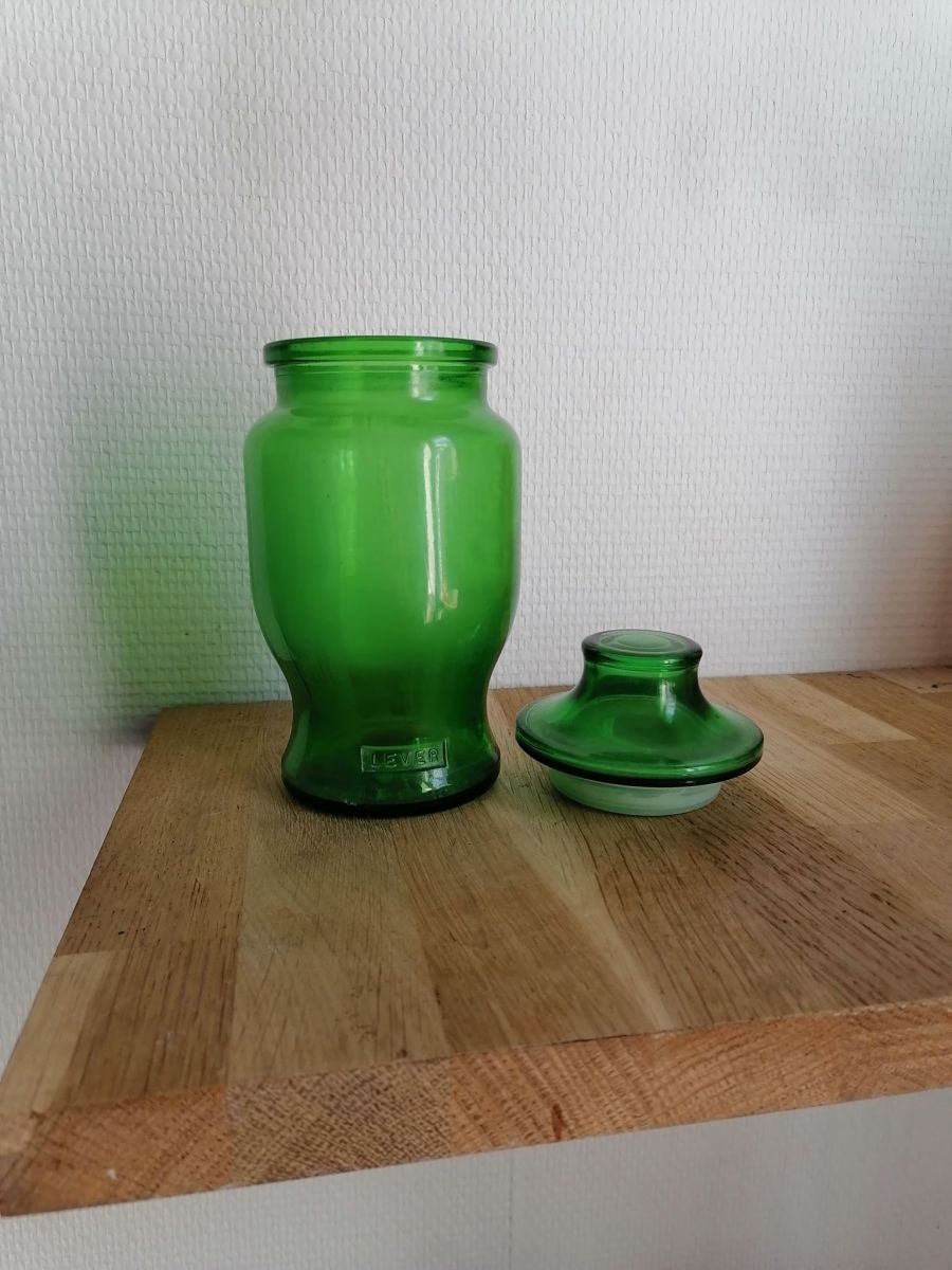 Por d'apothicaire en verre de la marque Lever. En très bon état.