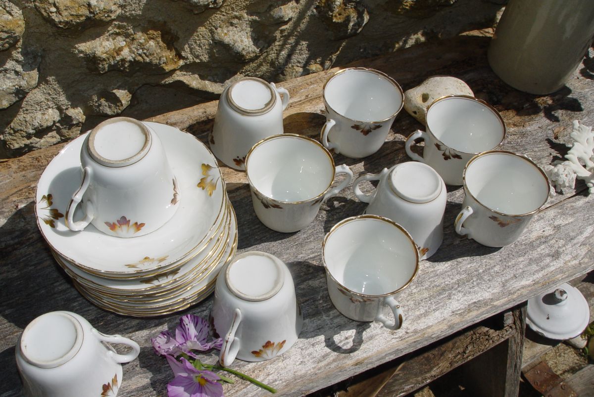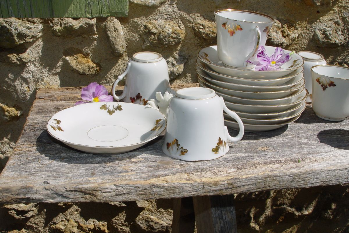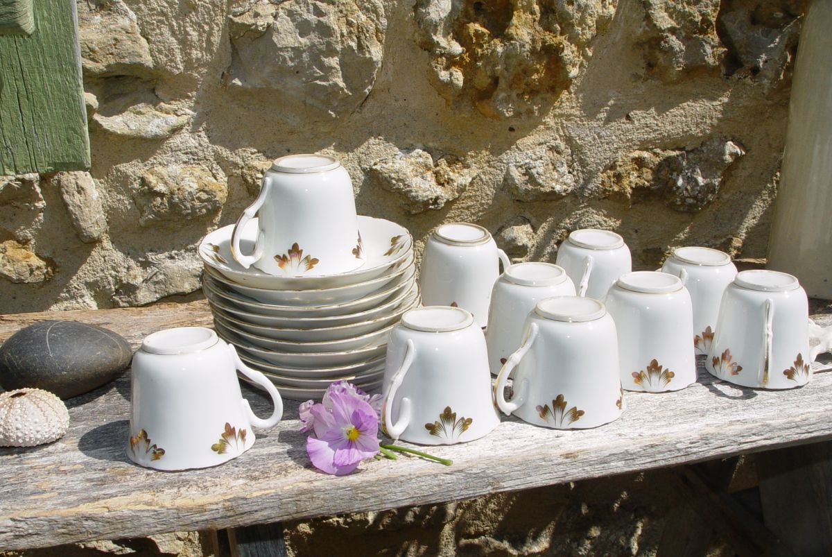 Service de 10 tasses à café et leurs soucoupes