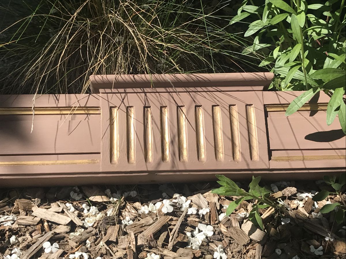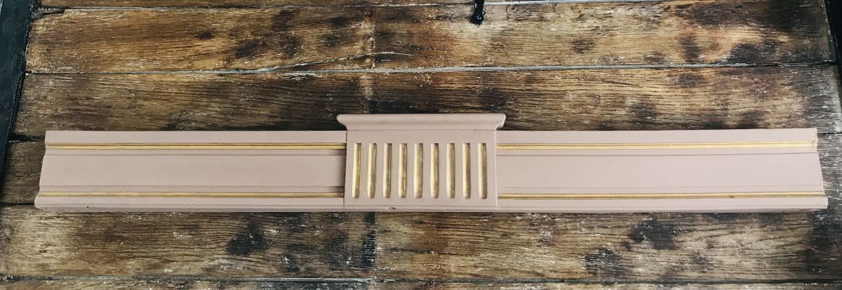 Fronton ancien couleur taupe et filet or. Il peut être placé au dessus d’une porte ou au dessus d’un buffet.C’est une belle pièce de décoration.