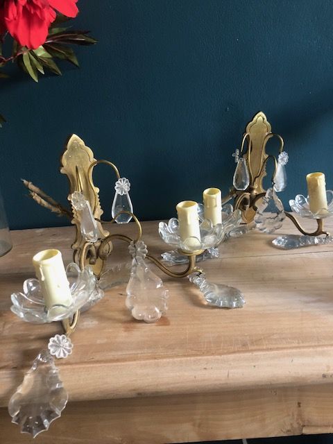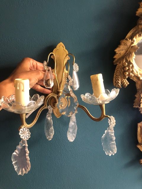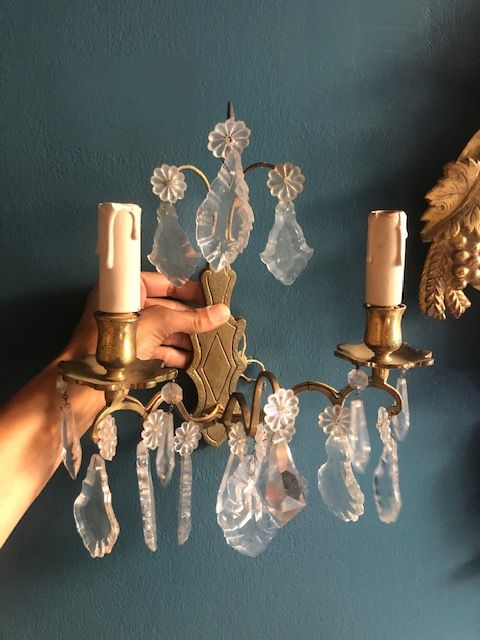 Appliques vintage deux bras dorées à pampilles