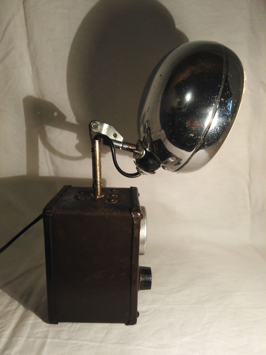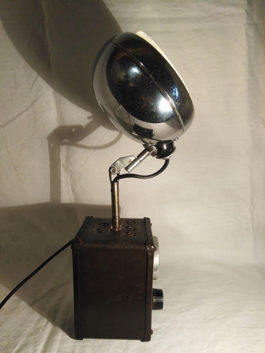 Lampe faite a partir d'un voltmetre et d'un petit phare de la marque bosch. Il est installé sur une articulation pour pouvoir l'incliner comme on veut. L'allumage est branché sur l'interrupteur du voltmetre.