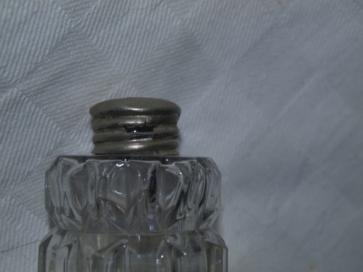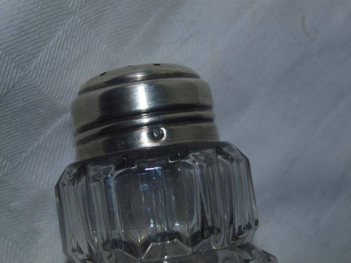 - la poivrière présente les même dimension (mais les trous de saupoudrage sont plus petits) et son couvercle est désargenté par l'usage.