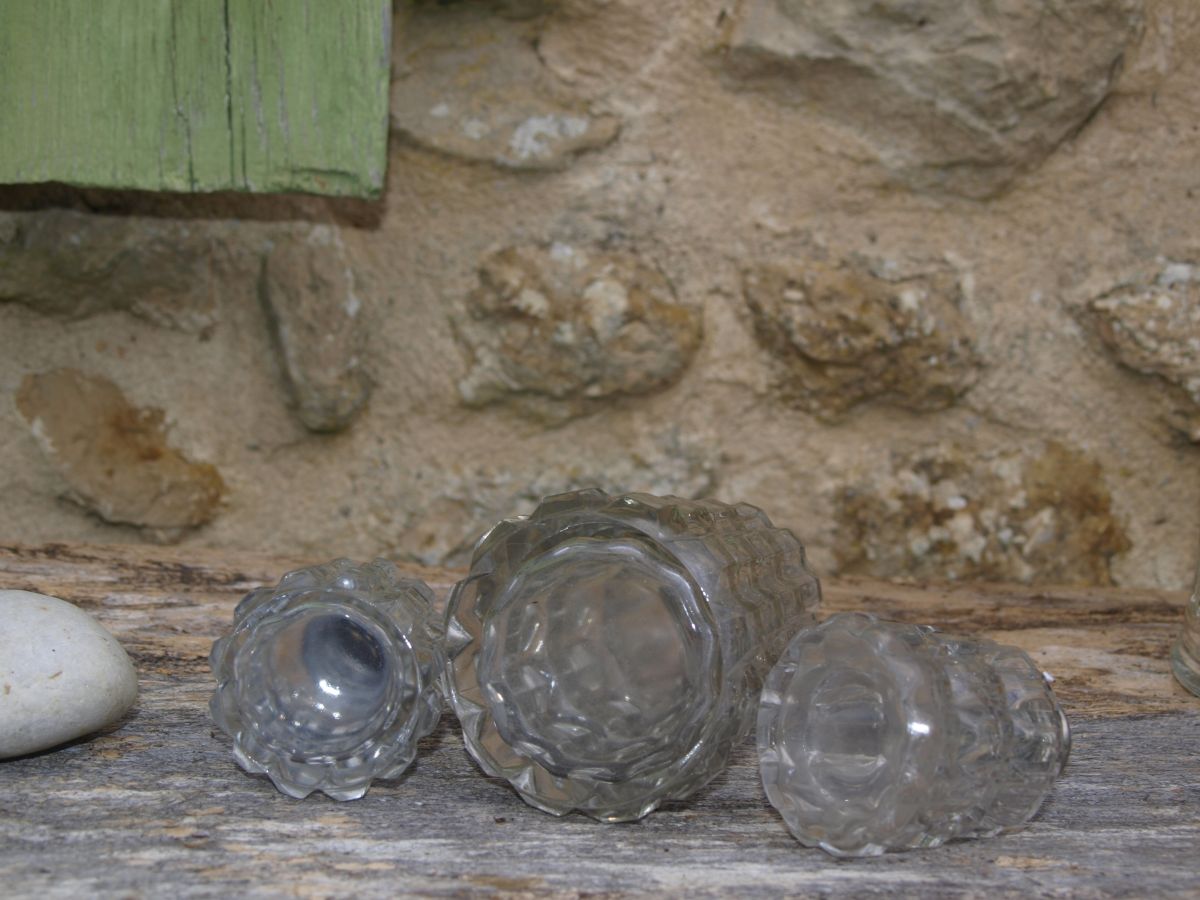 Voici 3 anciennes petites saupoudreuses assorties en verre taillé (XIXème ou début XXème)