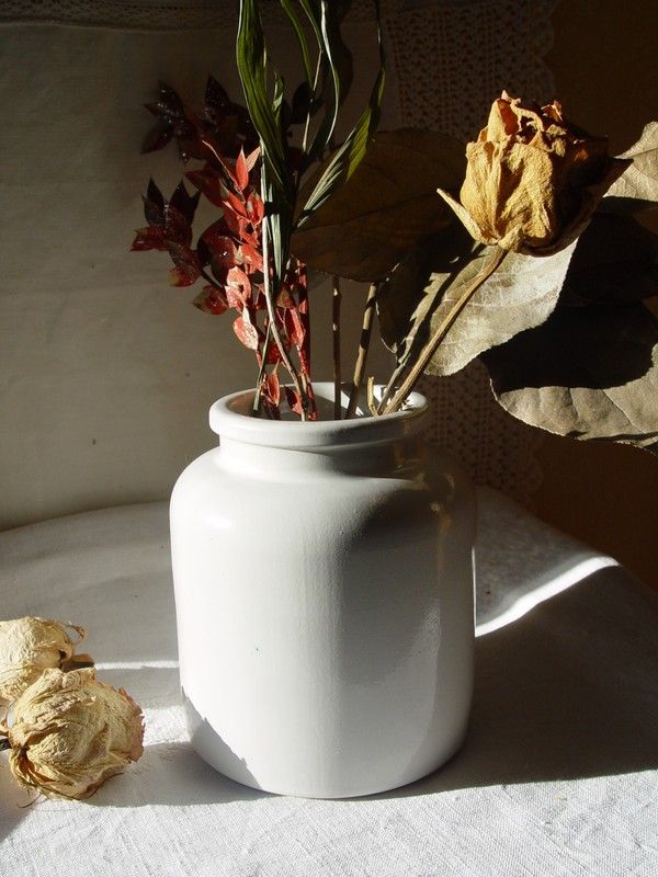 Joli pot en grès vernissé beige grisé, sans doute ancien pot à moutarde.