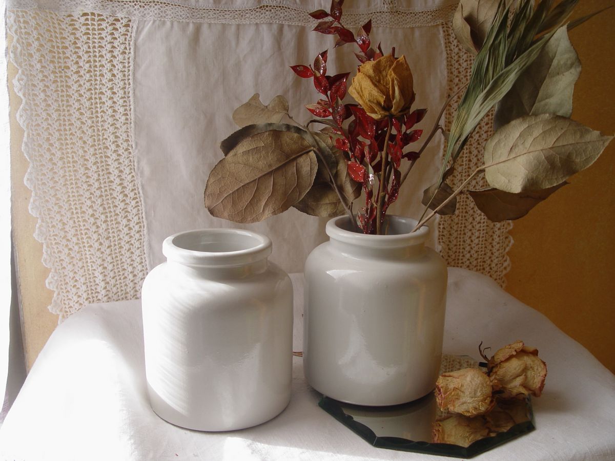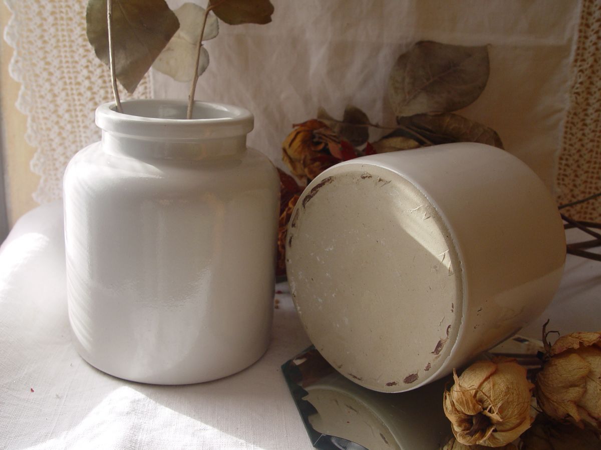 Voici 2 pots en grès vintage vernissés, beige grisé en parfait état.