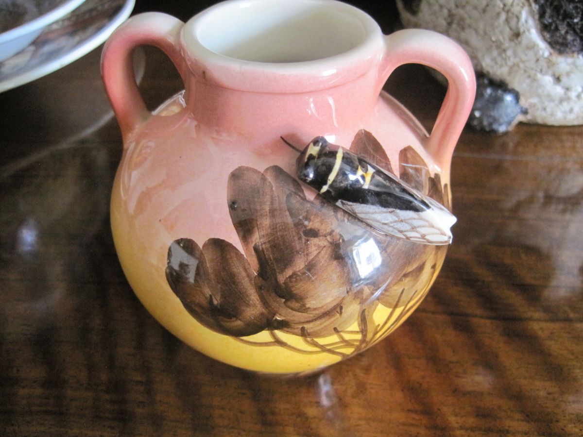 Vase à anses en céramique émaillée cigale Provence signée ( Vallauris XXème.)