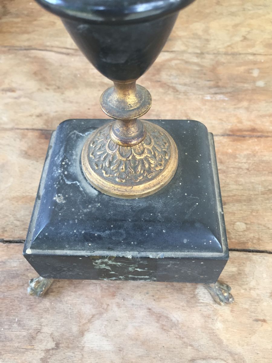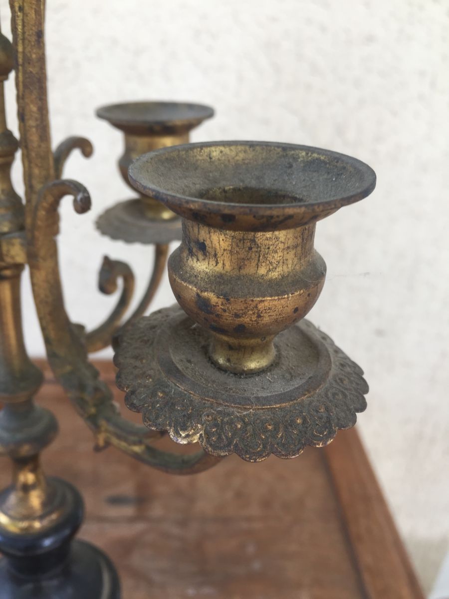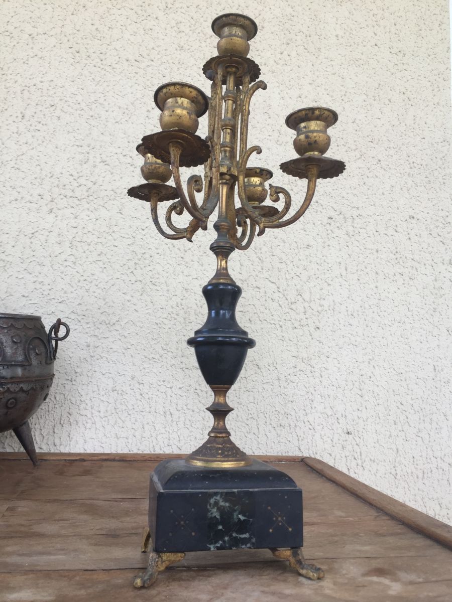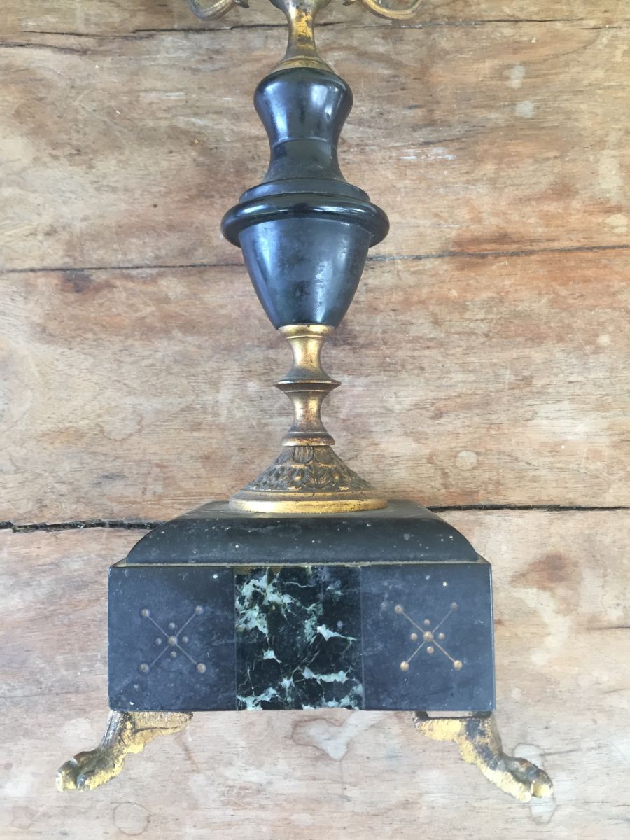 Support pour 5 bougies en laiton sur support marbre noir vert