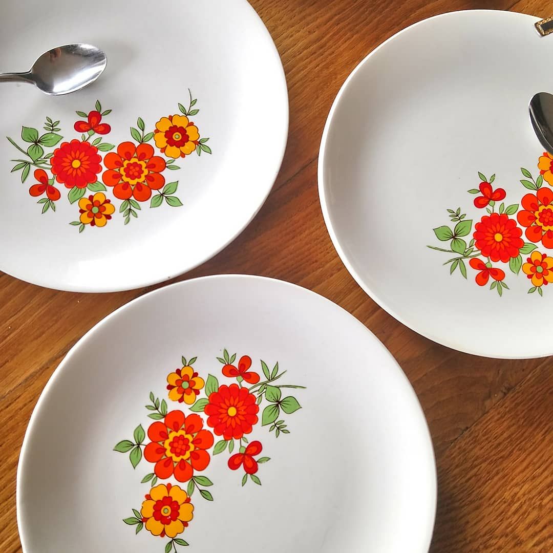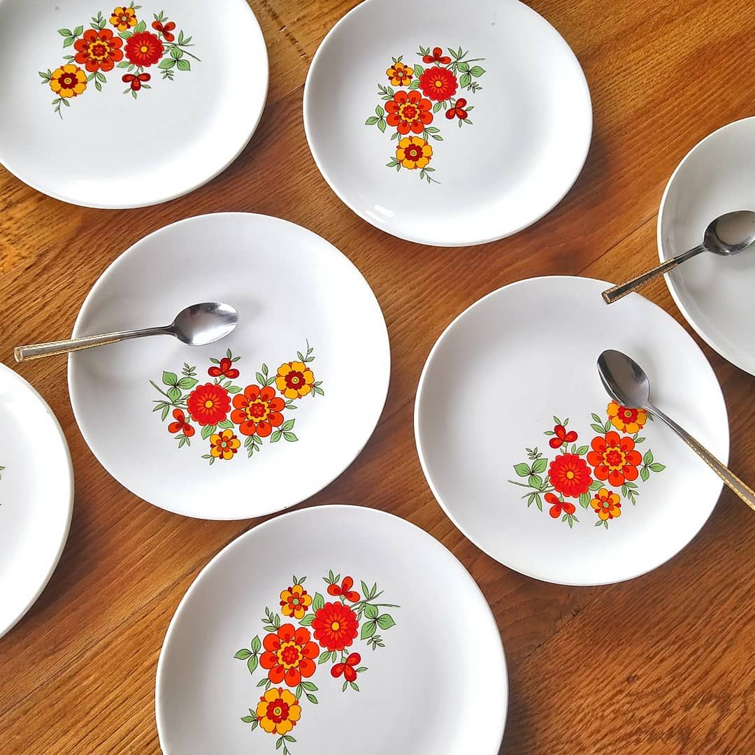 Lot de 7 assiettes à dessert vintage en porcelaine