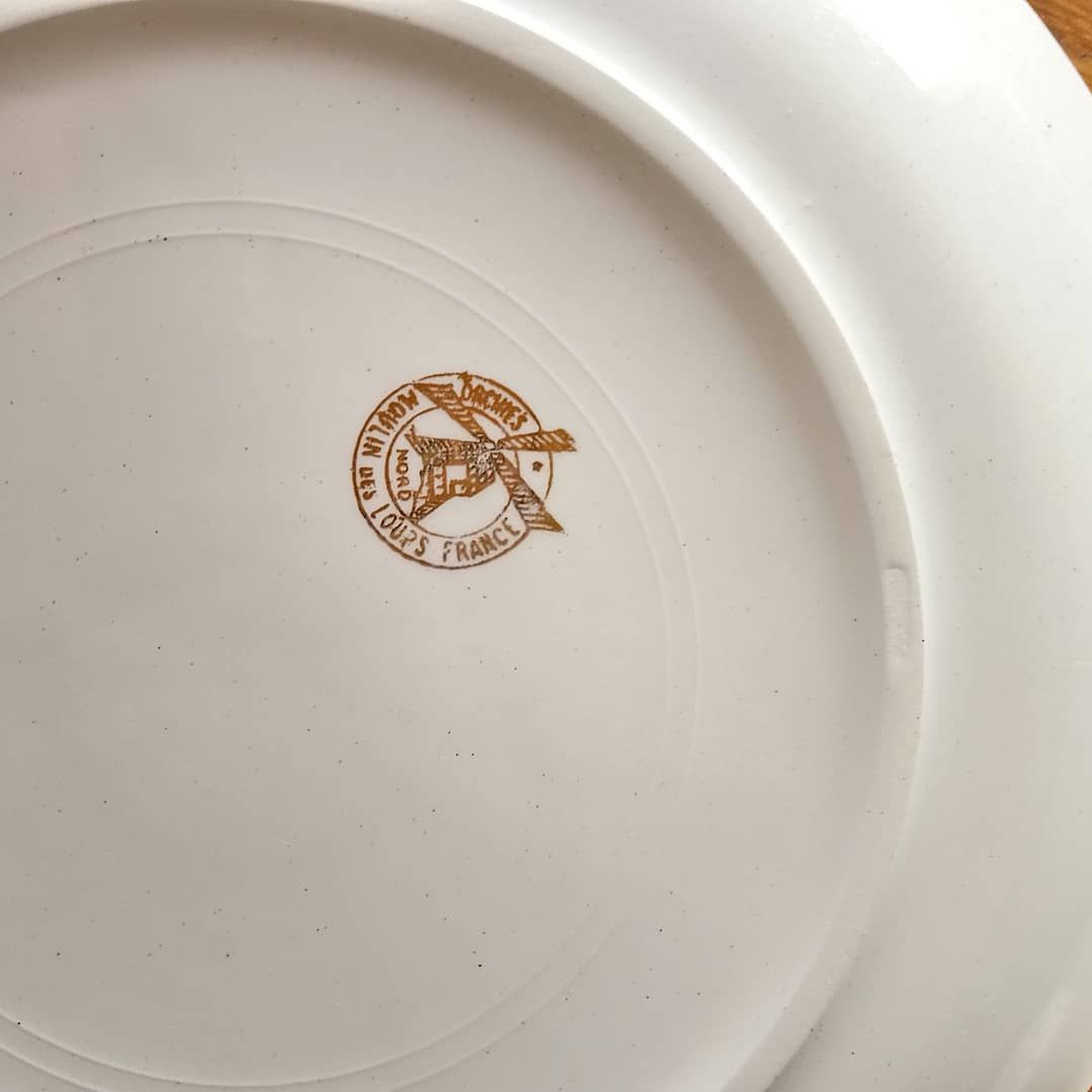 Jolies assiettes vintage en porcelaine, "Moulin des Loups Orchies" modèle Québec.
