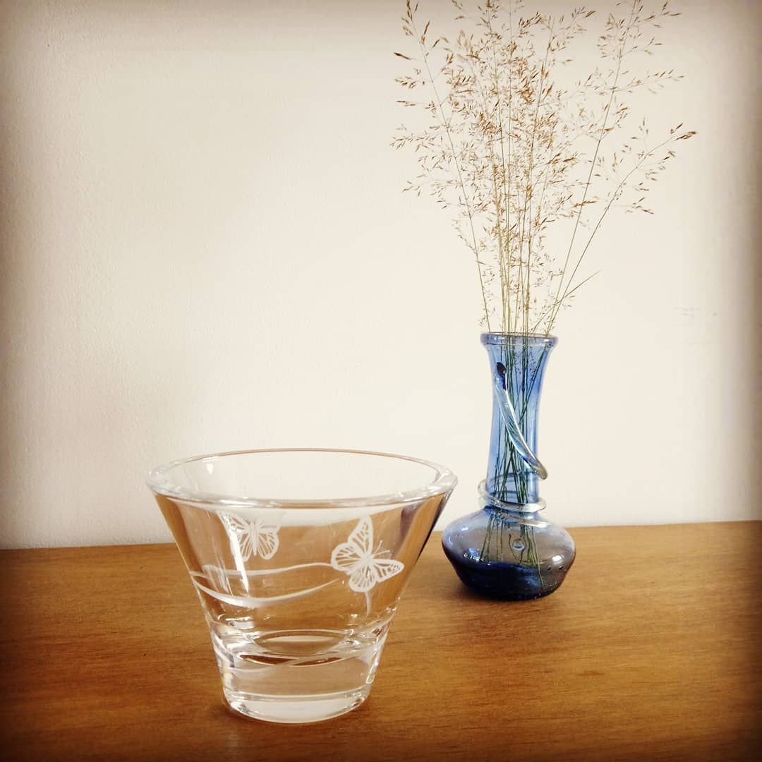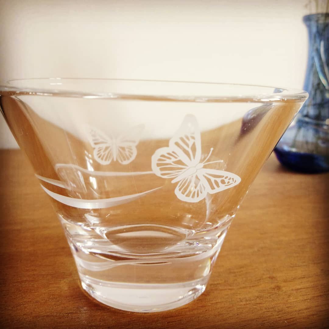 Joli vide poche en cristal d'Arques, motif papillon souligné d'un joli liseré en relief.