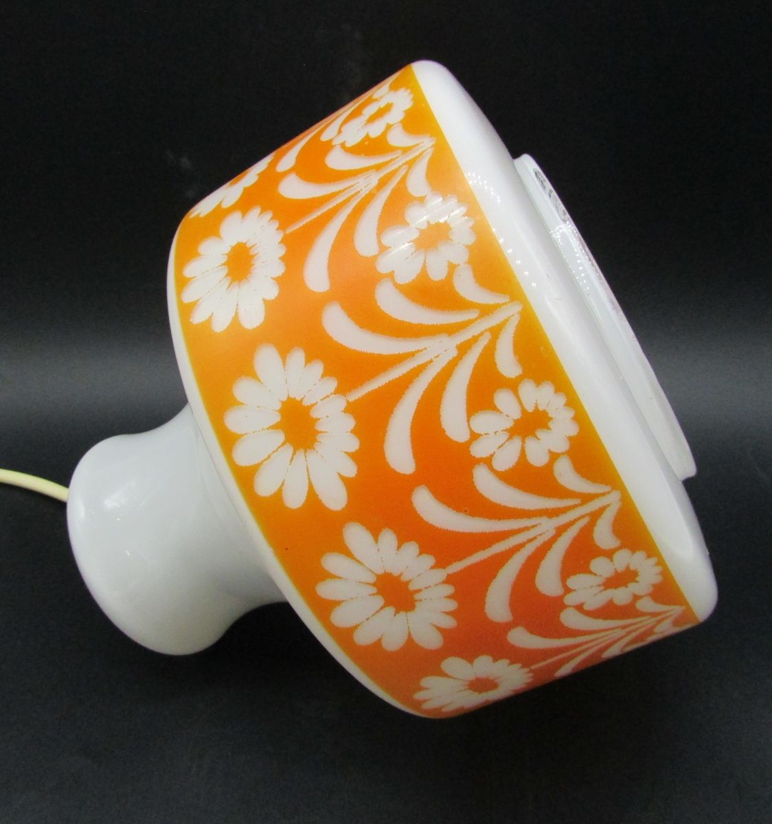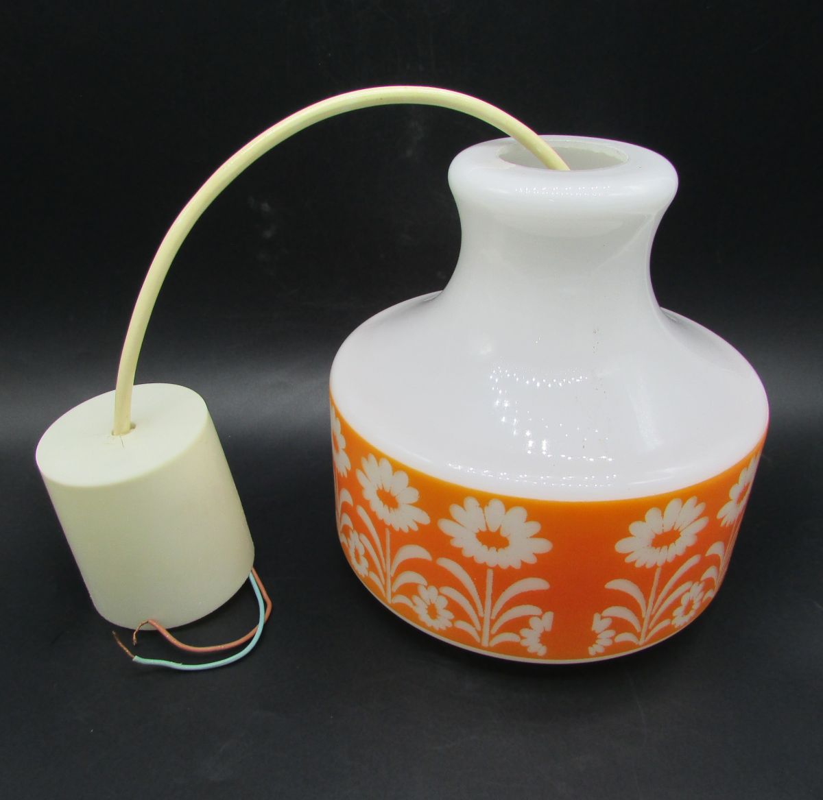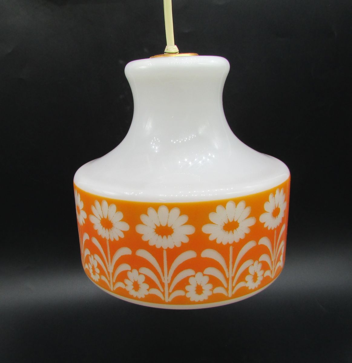 lustre verre opaline frise orange déco fleurs vintage opalin