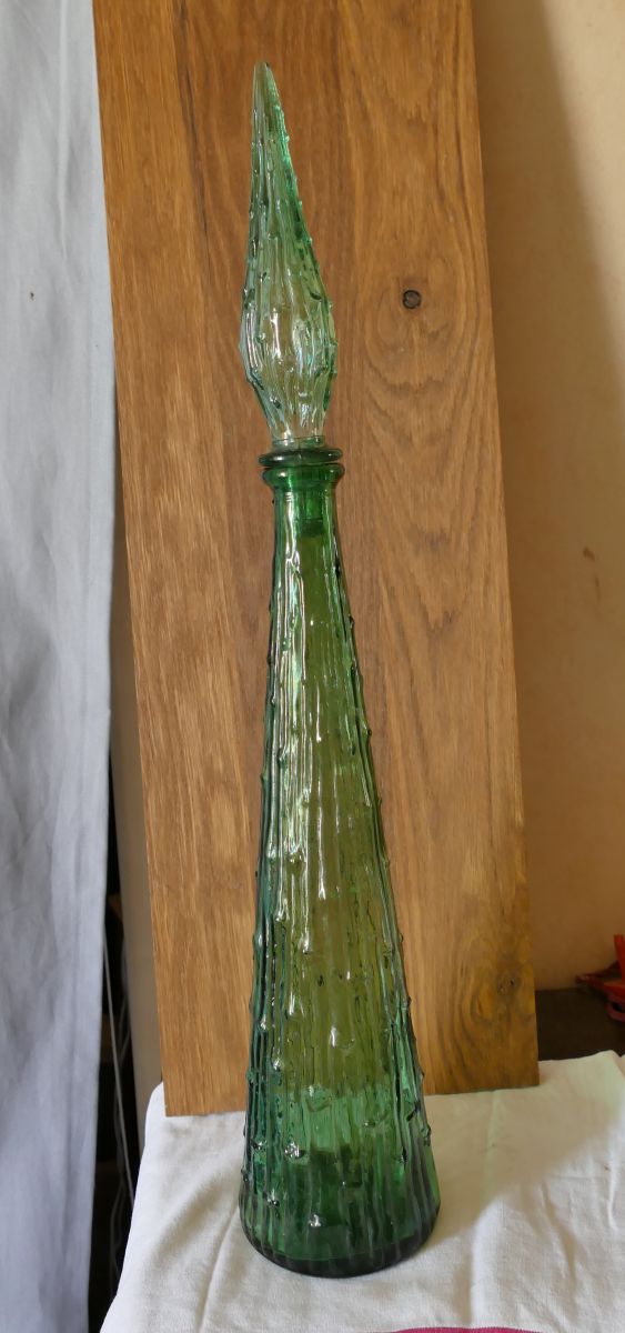 CARAFE EMPOLI CACTUS 39cms, 56 cms avec le bouchon, léger éclat au niveau du goulot.