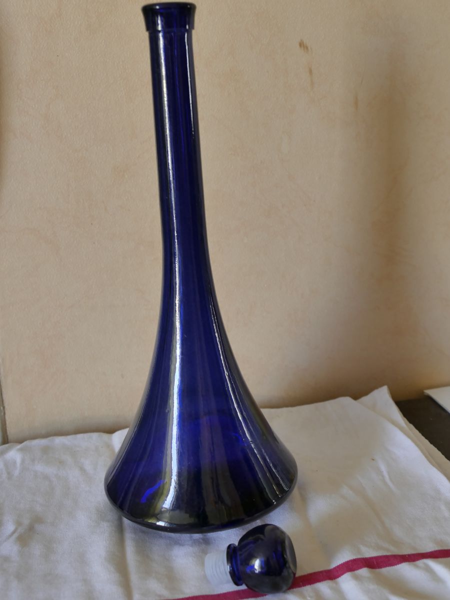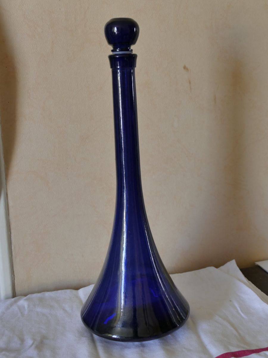 Carafe bleue vintage empoli ? Avec son bouchon, bon état.