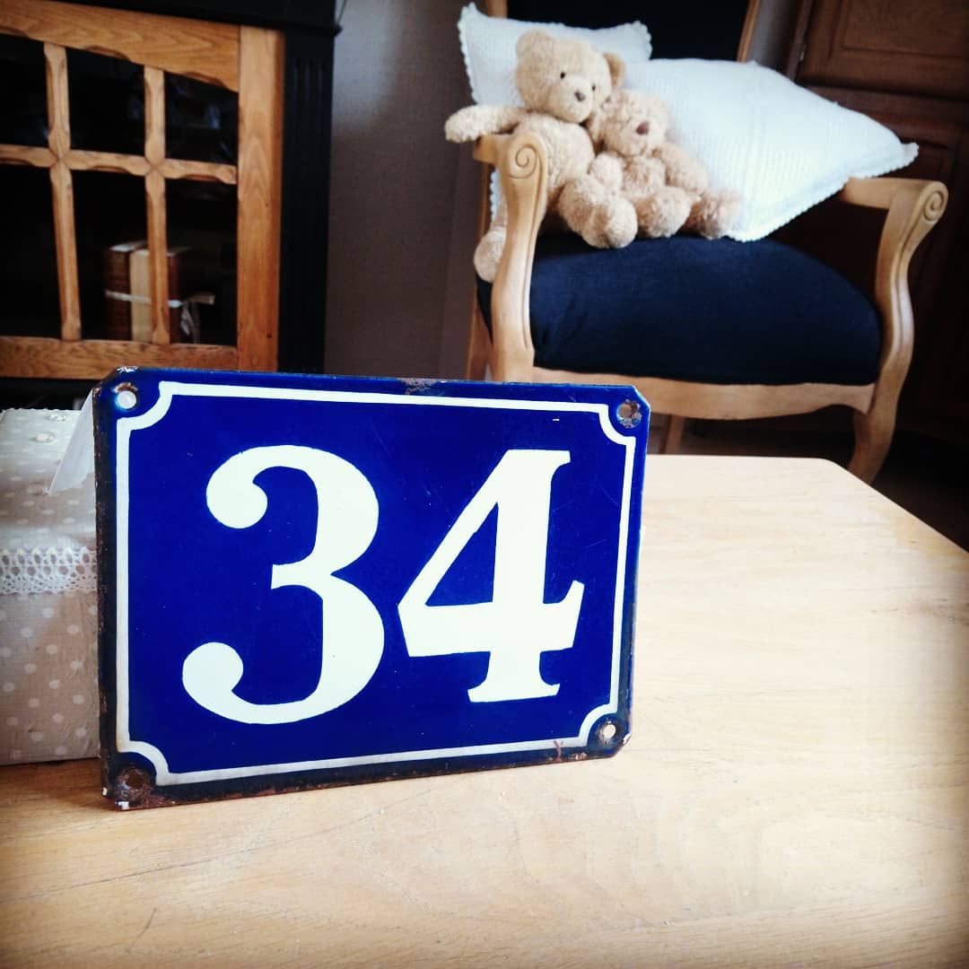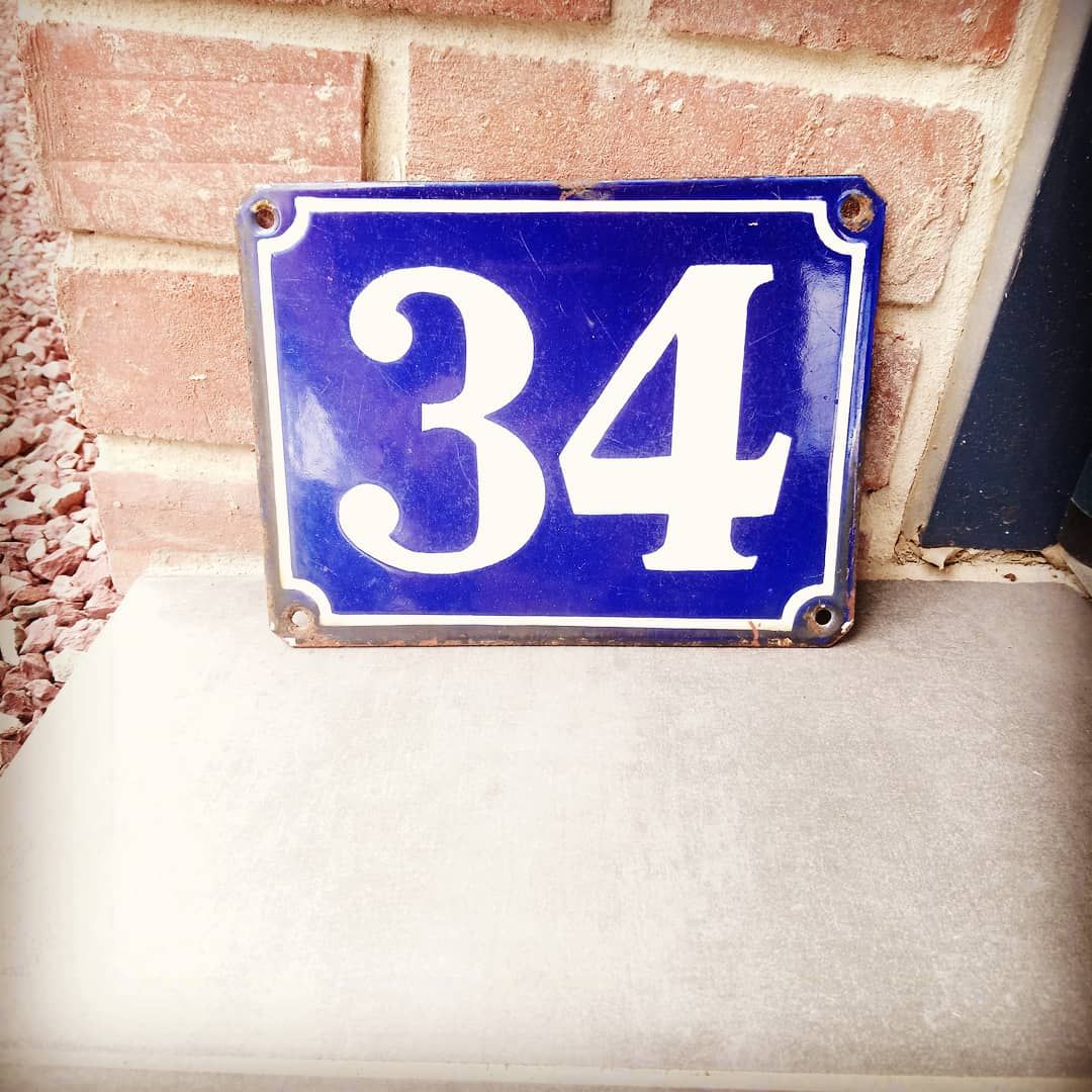 Plaque émaillée numéro de rue, quelques sauts d'émail, mais a gardé tout son charme.