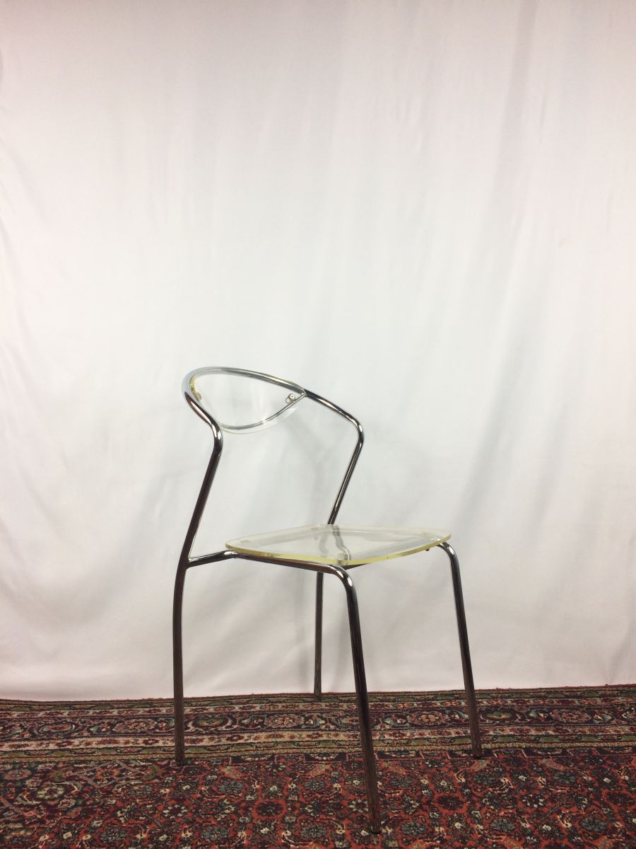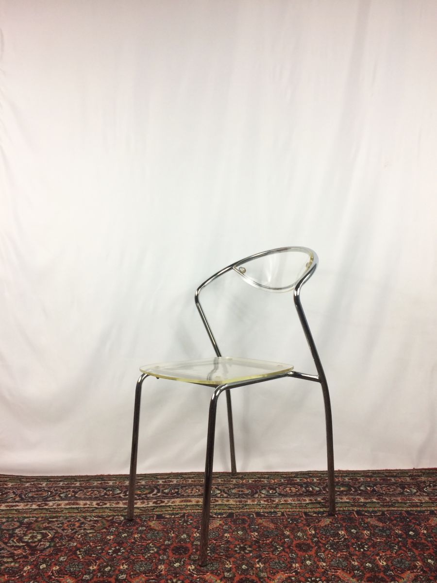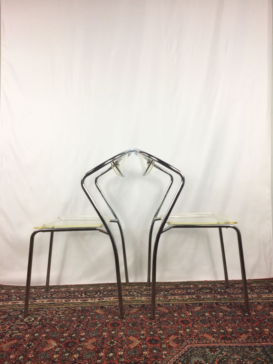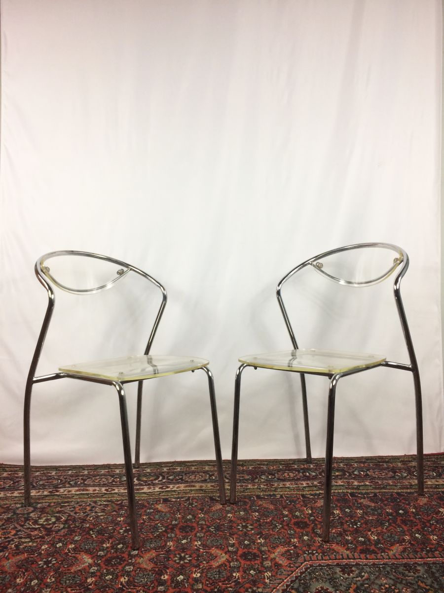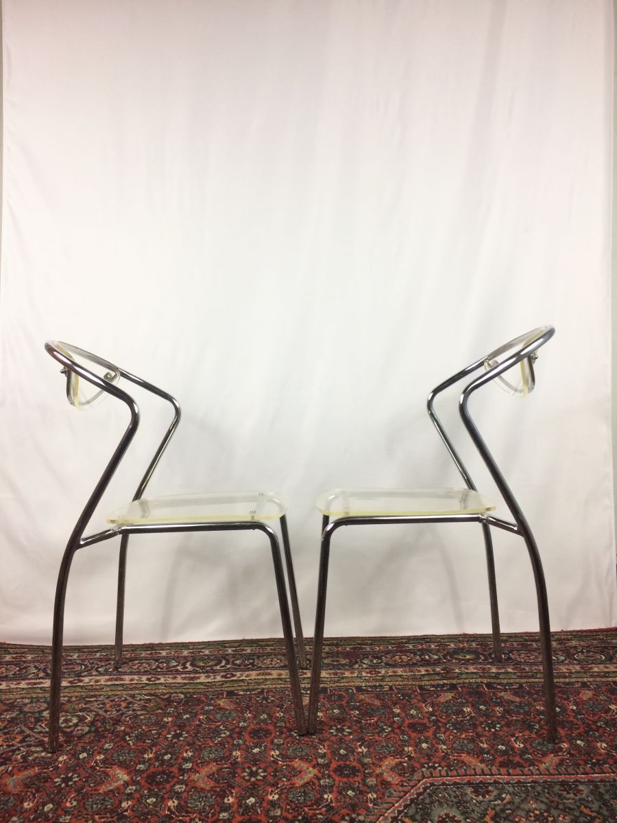 Paire de chaises en plexiglas et chrome des années 80 en bon état.