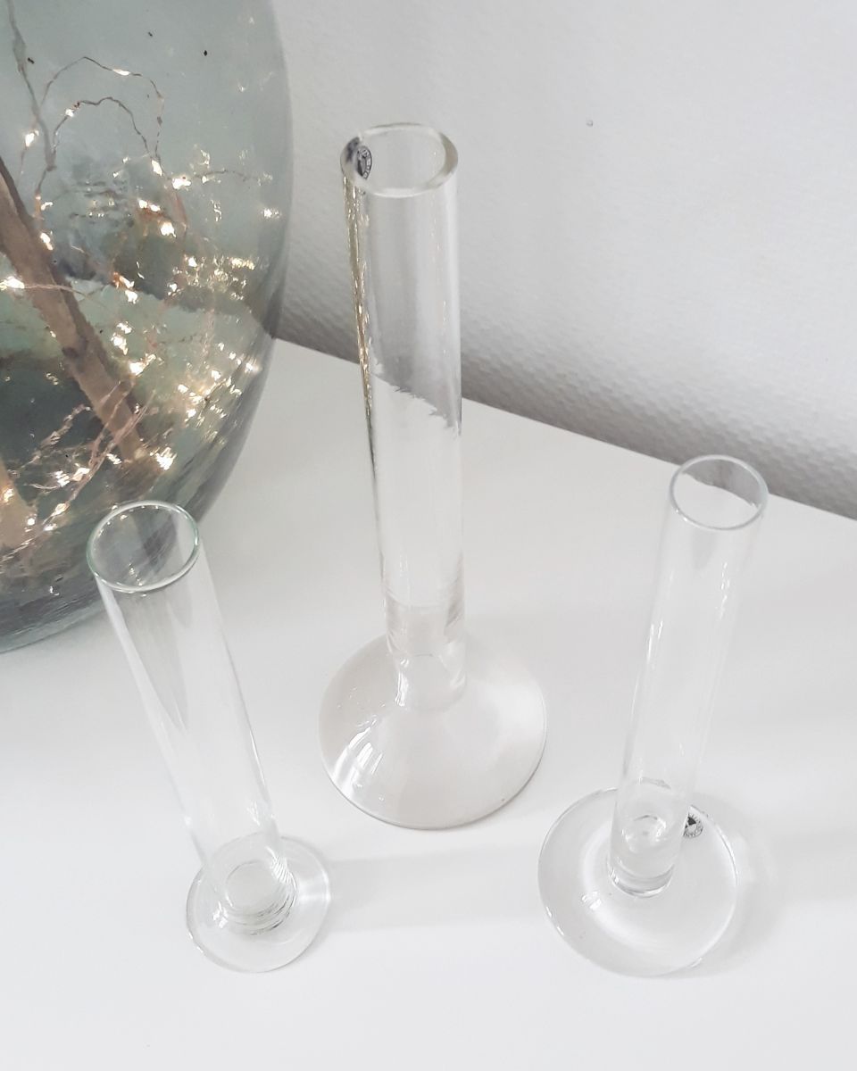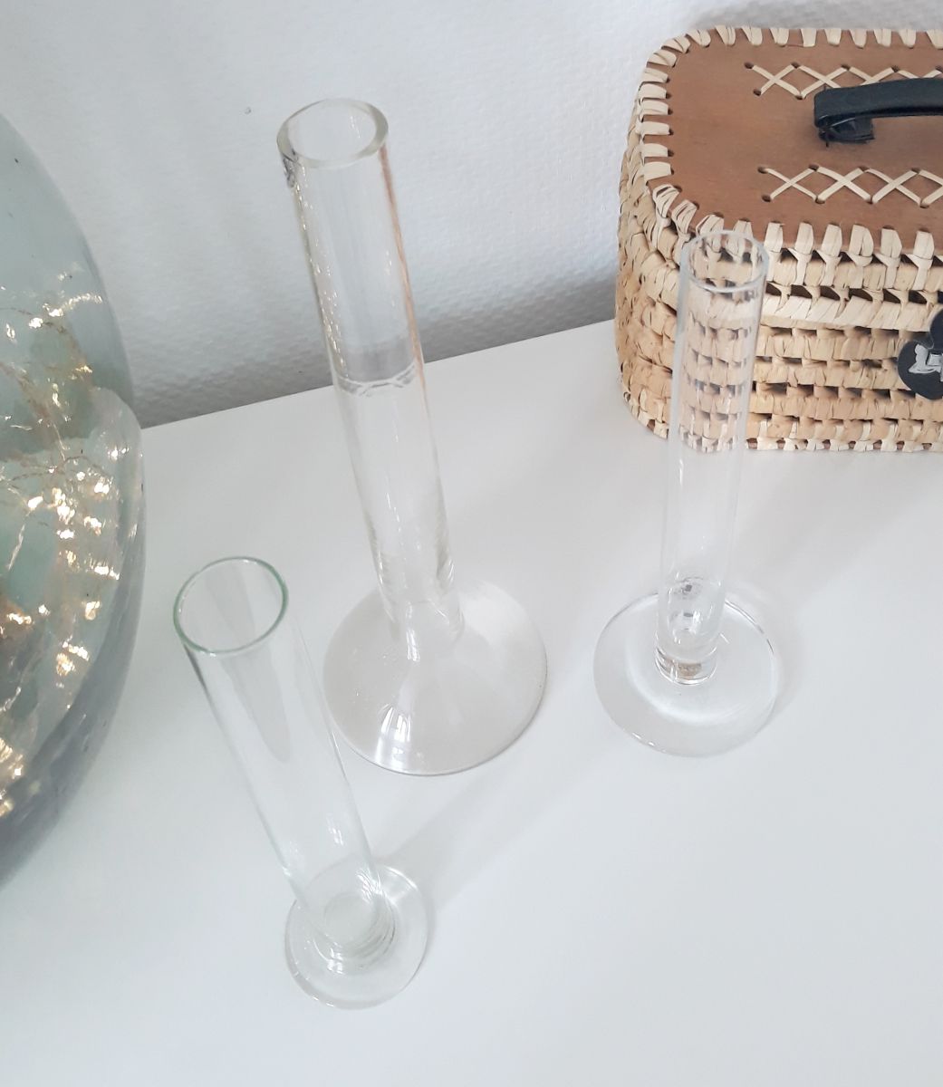 Lot de 3 éprouvettes anciennes en verre transparent.