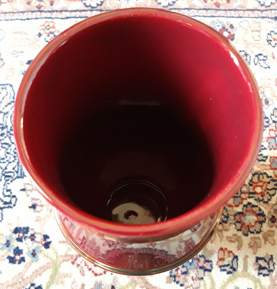 Couleur rouge profond souligné de 3 liserais dorés.