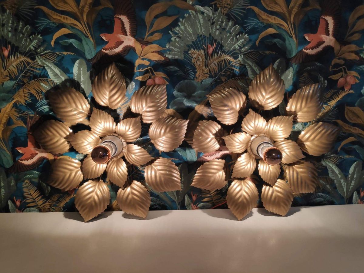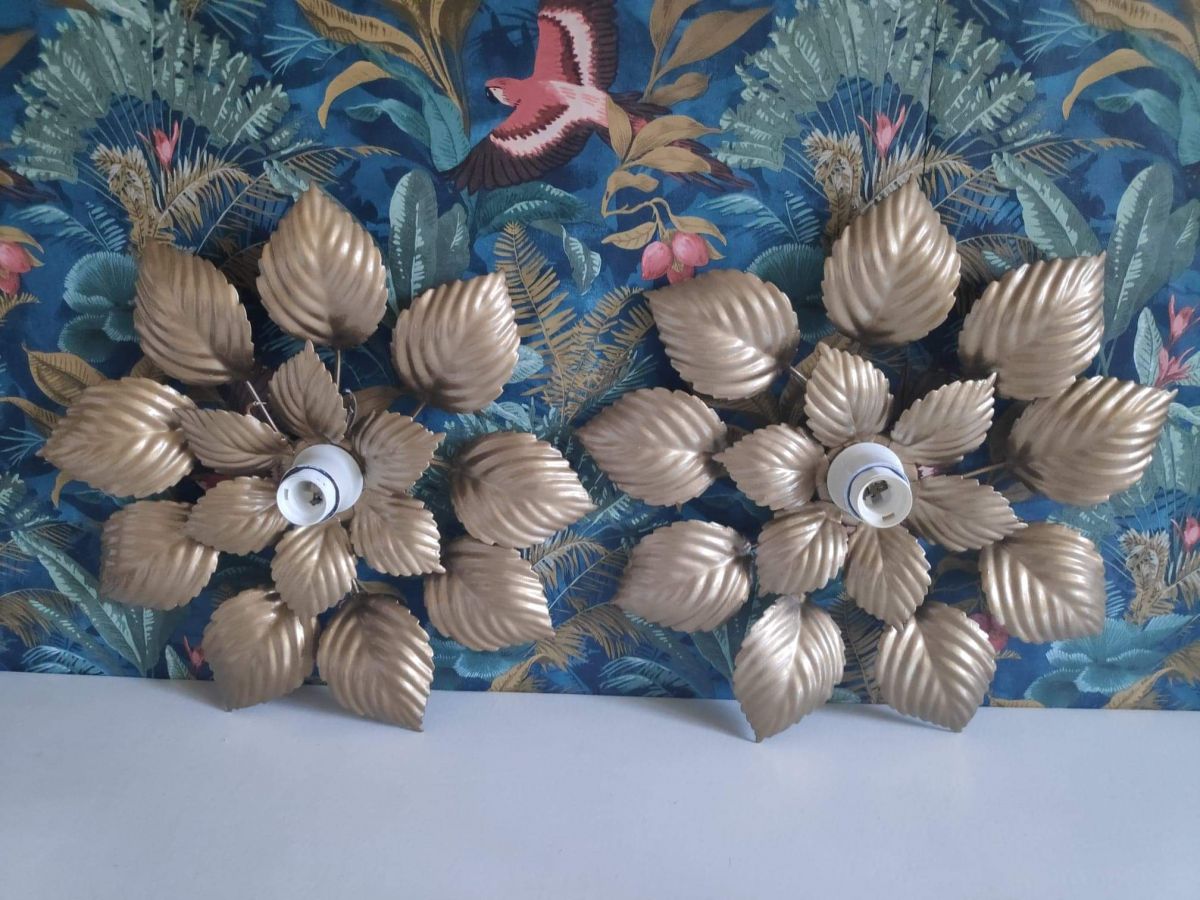 lot de 2 appliques murales feuilles dorées vintage des années 70 en métal doré