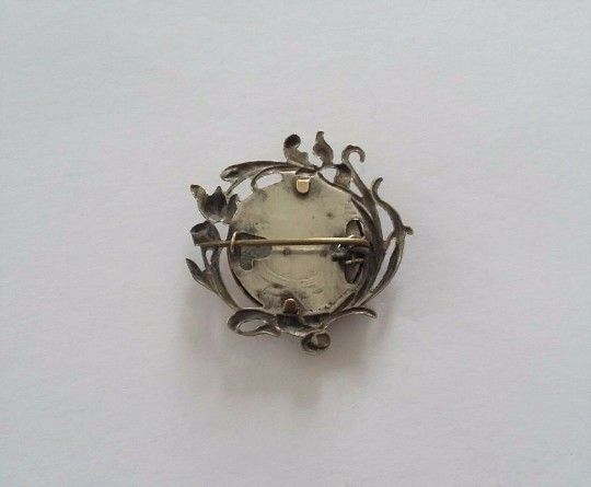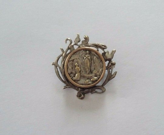Broche Grotte de Lourdes décor Floral en Métal Ancienne
