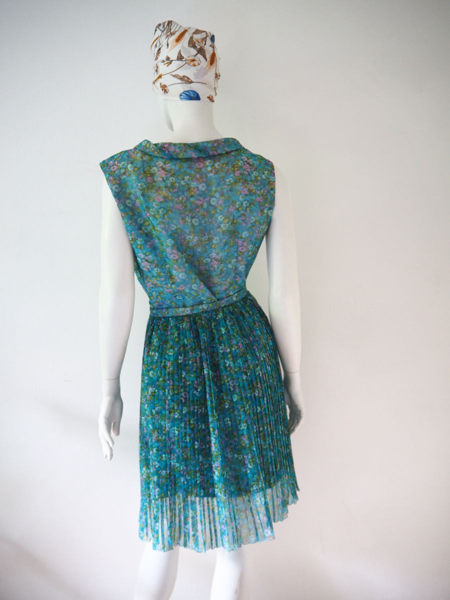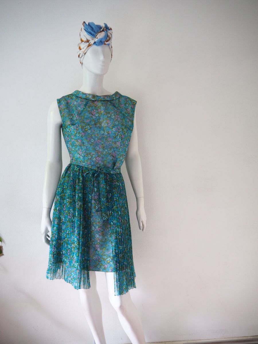 La robe est a une coupe droite, très classe. Une jupe plissée à ceinturer à la taille (ou non), maintenue par une agrafe dissimulée.