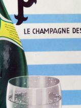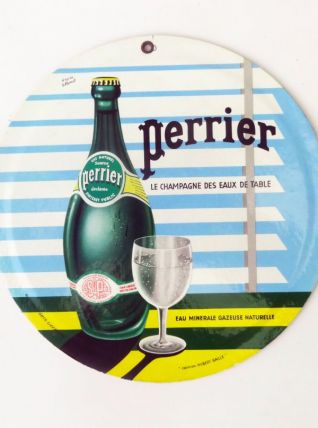 Joli carton publicitaire vintage PERRIER ‘’le champagne des eaux de table’’, création Hubert Baille d’après Villemot.